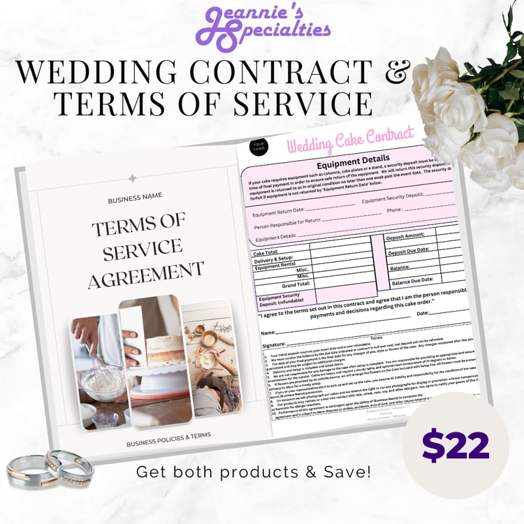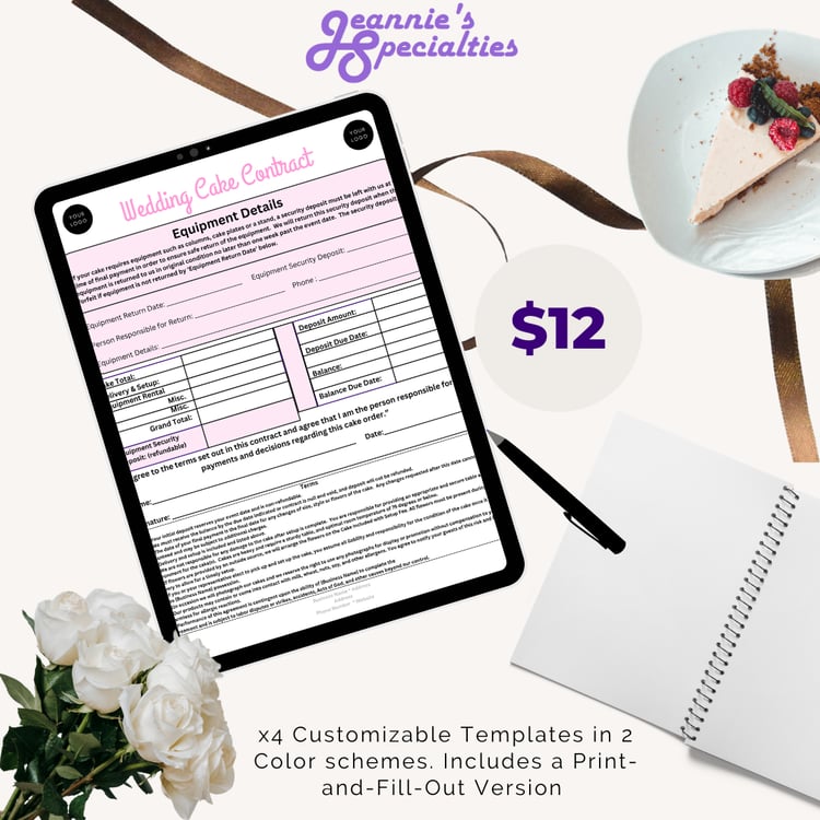 Professional templates and tools designed to safeguard your work, streamline your process, and help your cake business show up confidently — from first inquiry to final delivery.