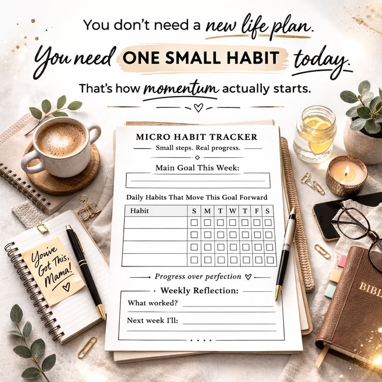 I create simple, faith-led tools and rhythms designed to fit into motherhood—nap times, early mornings, and the quiet margins in between. No hustle. No overwhelm. Just the next faithful step, taken with intention.