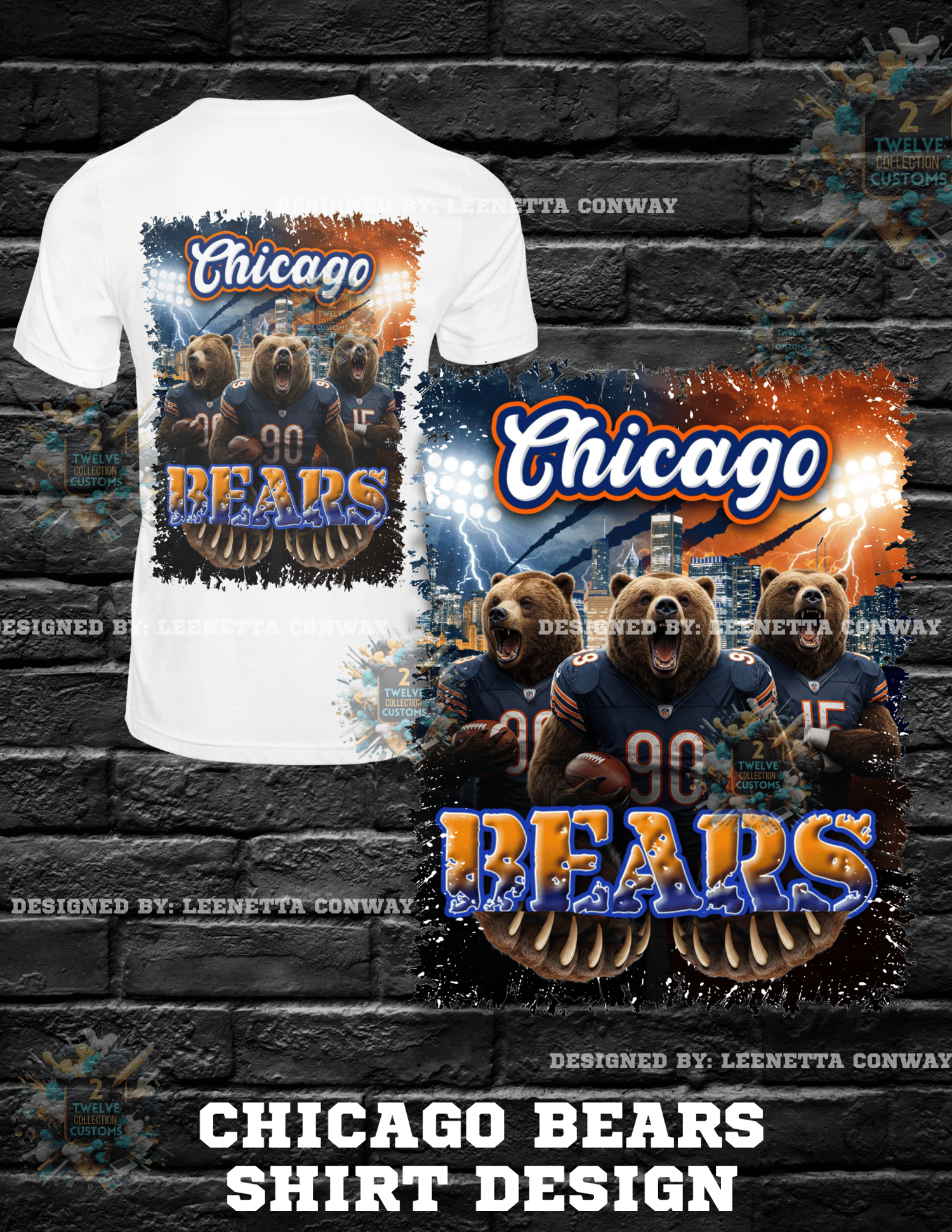 Show off your team pride with this bold and fierce Chicago Bears Football Shirt Design PNG! Featuring powerful roaring bears in football jerseys, dramatic lightning effects, and the Chicago skyline, this high-quality print-ready PNG with transparent background is perfect for fans who want to create one-of-a-kind Bears-inspired projects.