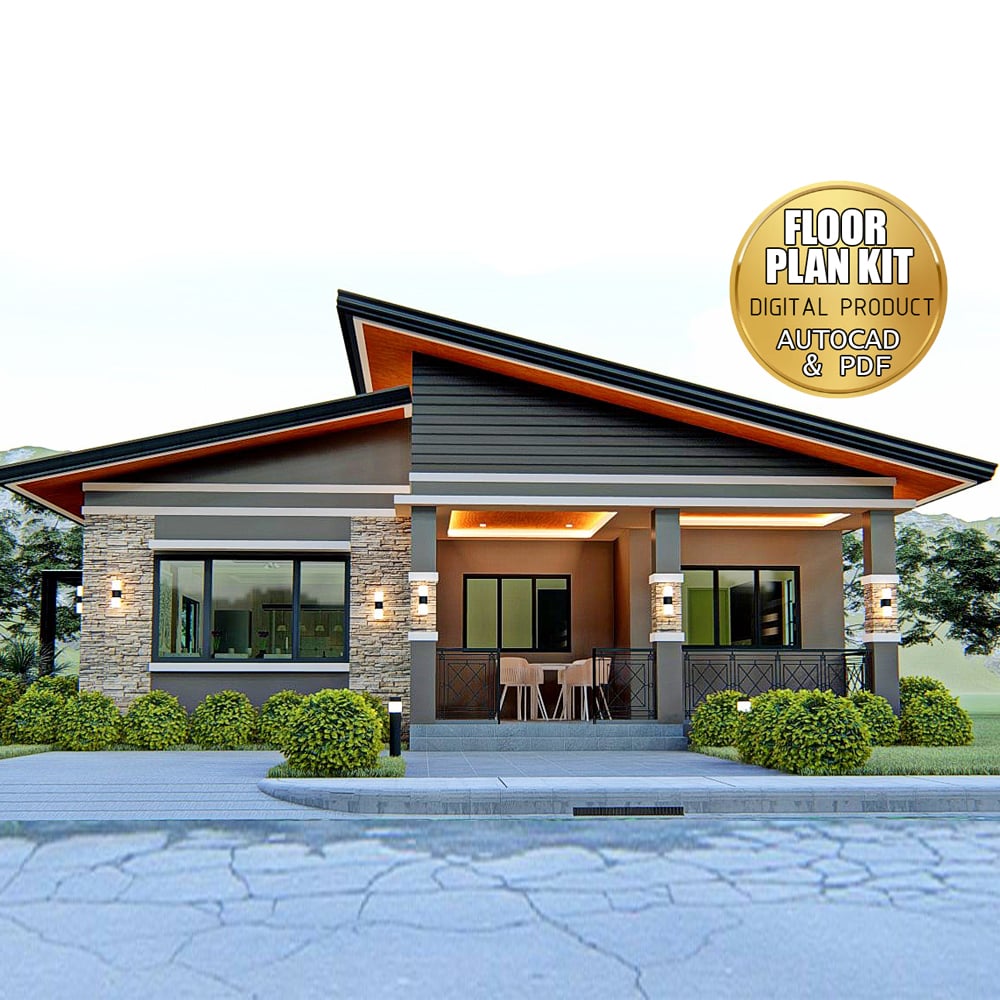 HOUSE DESIGN IDEA |7 X 13 Meters | 3 Bedroom | Pdf File and Cad file