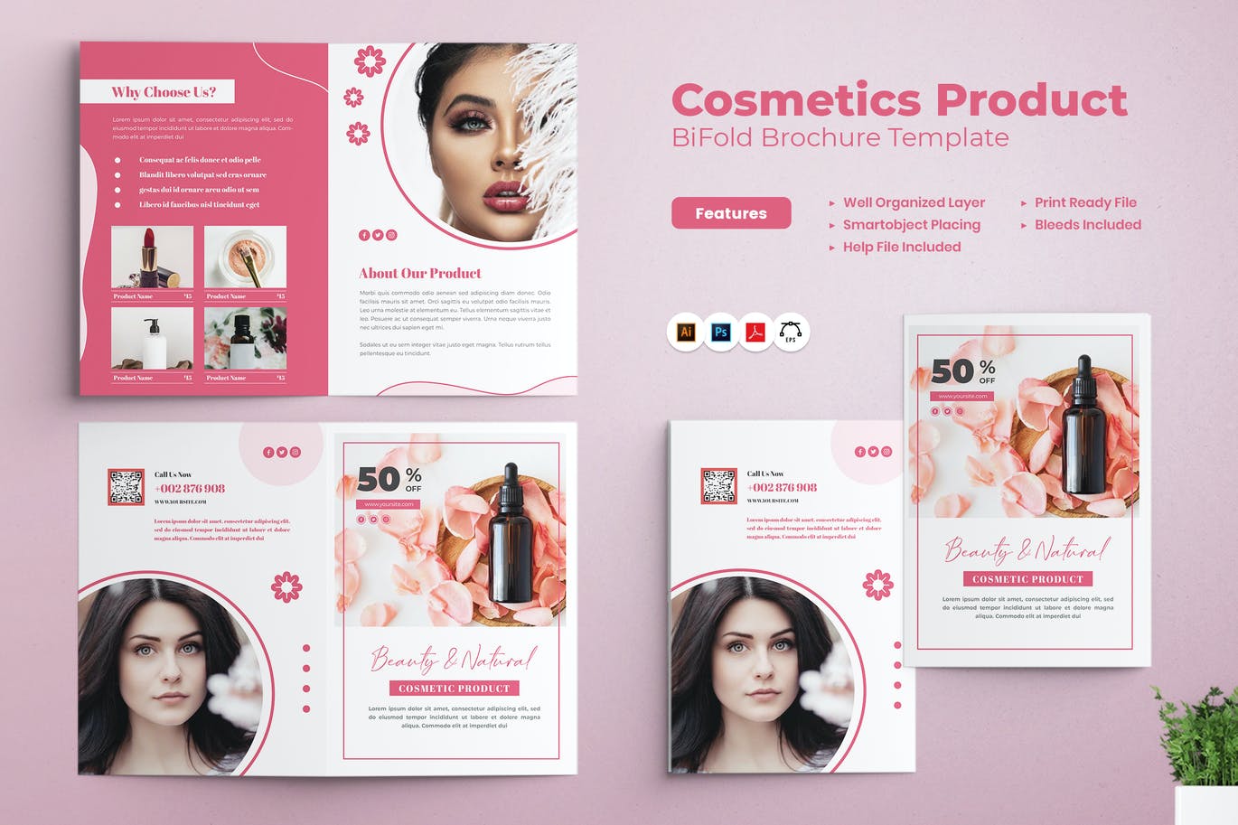 Cosmetics Bifold Brochure Template