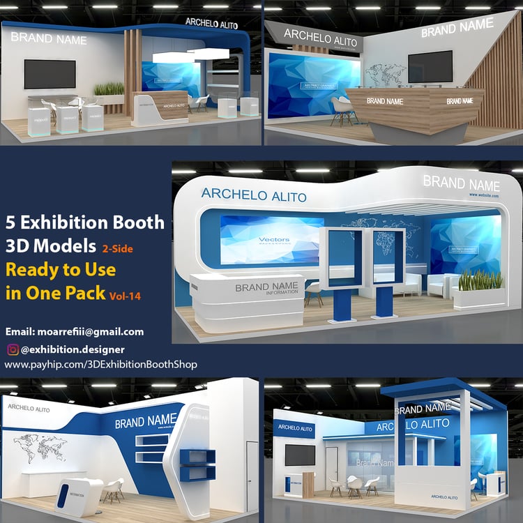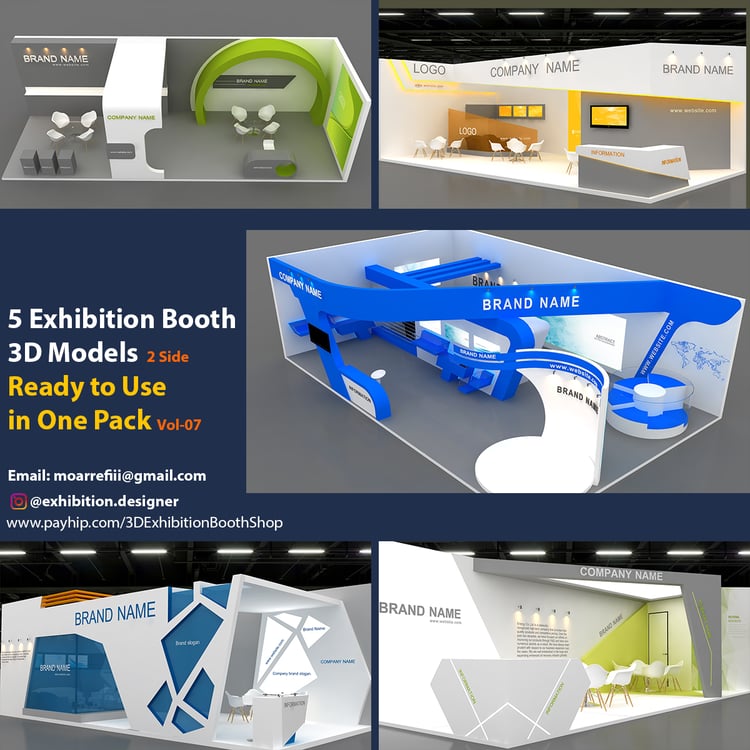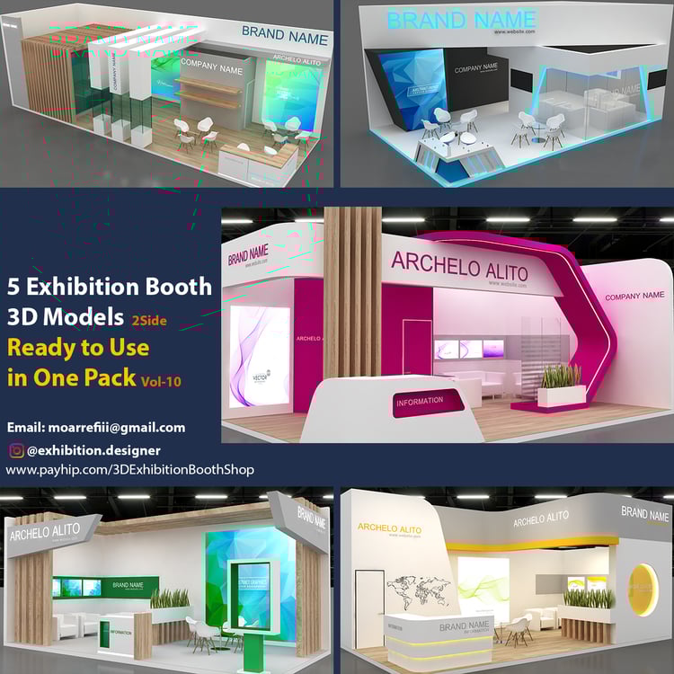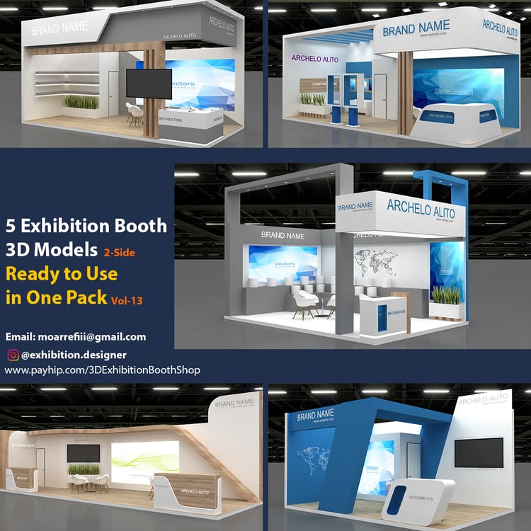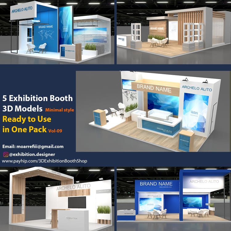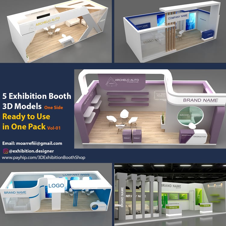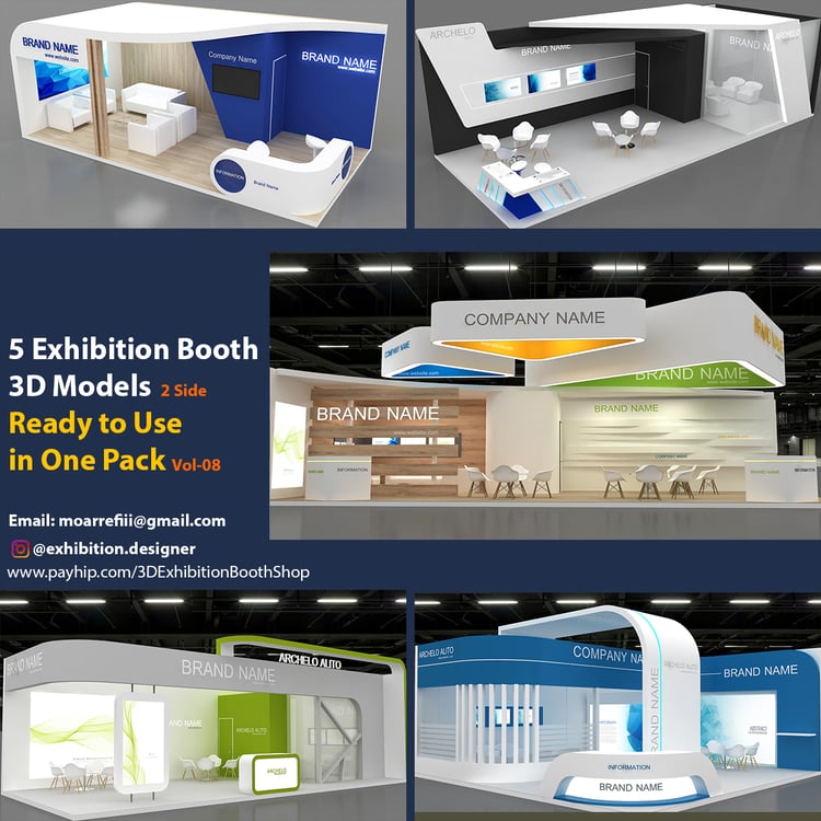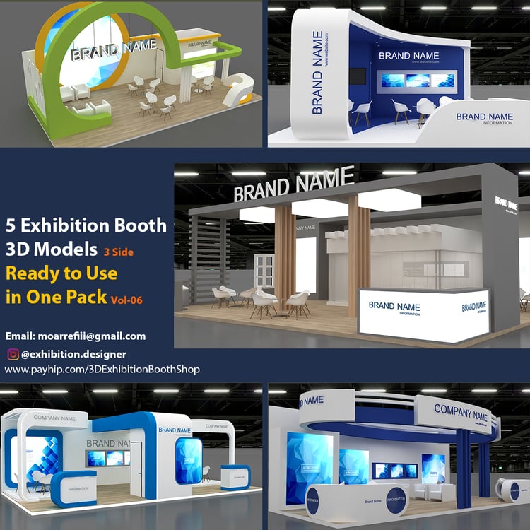 Here you will find 3D exhibition booth designs, trade show stands, and booth visualizations created with high-quality modeling.