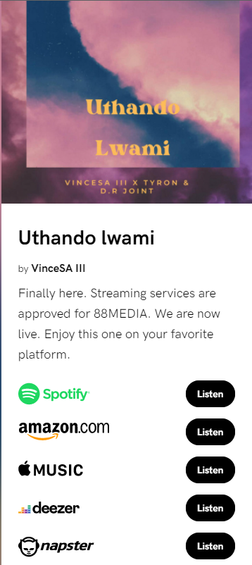 Since the beginning of this month, we have been working extra hard, making sure that our music is available on most streaming platforms. Finally, we are live on most streaming platforms including Apple Music and Spotify. We also added a page for the ...