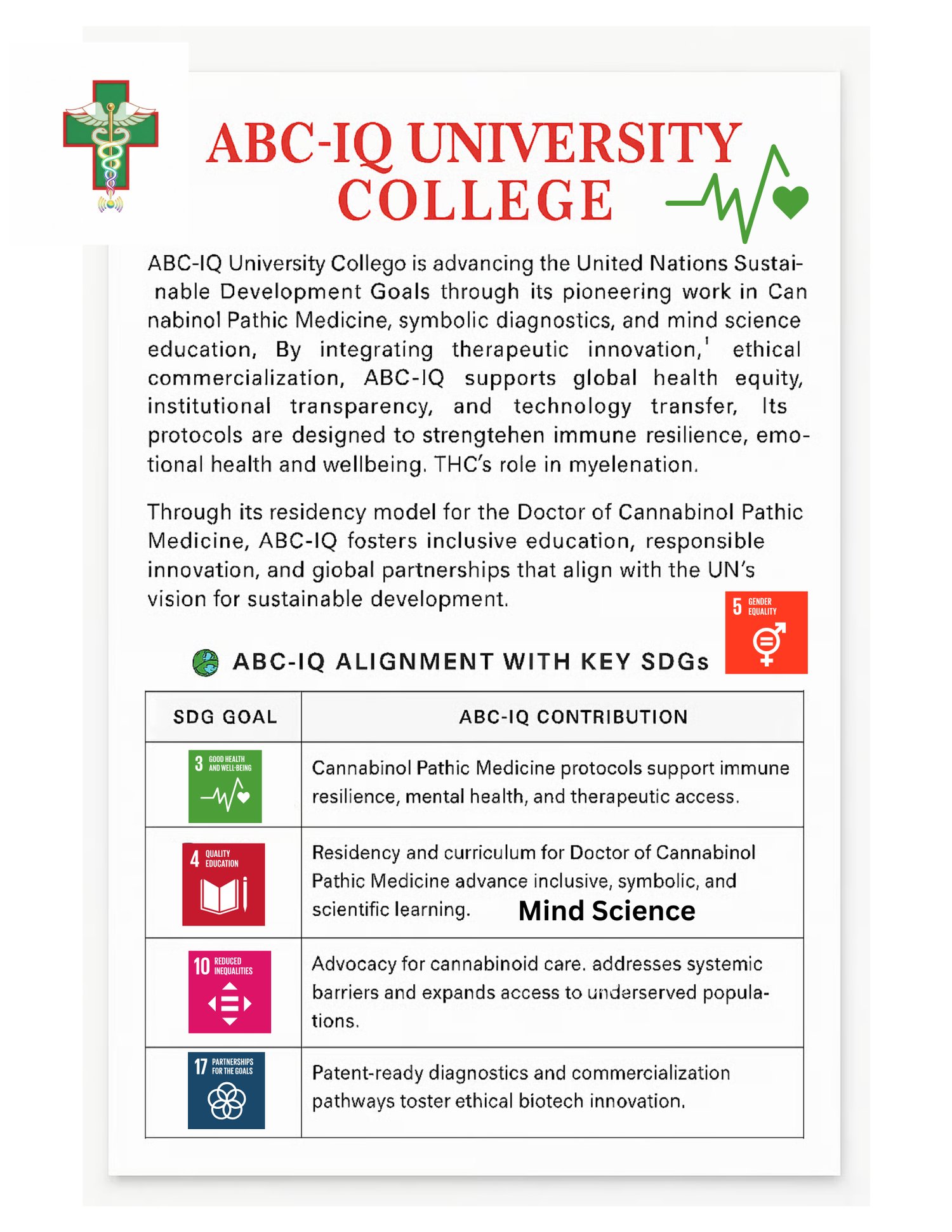 🧠 SDG 3: Good Health and Well-being Cannabinol Pathic Medicine protocols support immune resilience, mental EMOTIONAL health, and therapeutic access for THC production, growth and distribution.