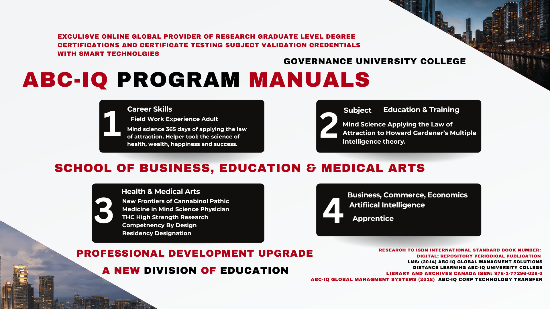 ABCâIQ provides a global openâadmissions model for adult career skills learning and certification through digital, timeâstamped testing certifications and advanced ISBN research credentials grounded in accessibility, innovation, and sovereign educational design.