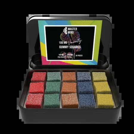 The Mastermind Gummy Squares contain 3000 mg of our premium blend of Psilocybe Cubensis Mushrooms. Each pack contains 5 Blue Raspberry, Cherry and Lime Flavored gummies! The gummy squares are soured and bite sized making them great for microdosing, perfect for first timers, or casual day tripping.