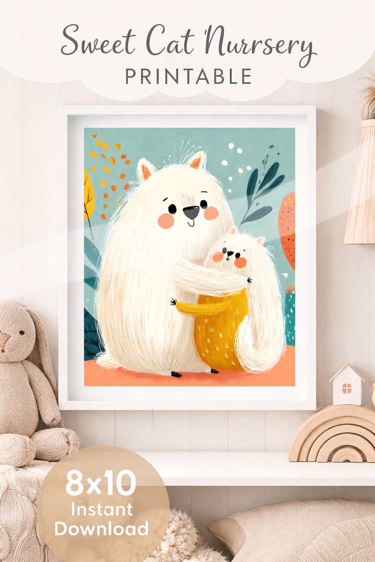 Sweet Cat Nursery Wall Art Printable 8x10 Kitten Baby Room Decor
