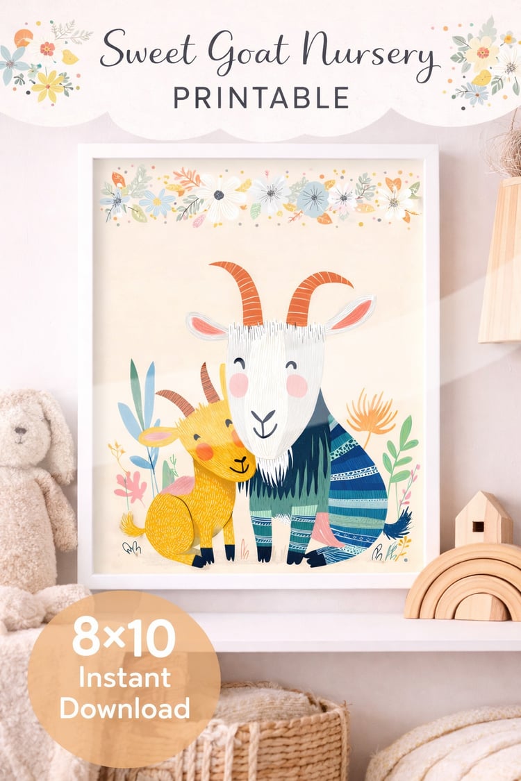 Sweet Goat Nursery Wall Art Printable 8x10 Baby Goat Decor