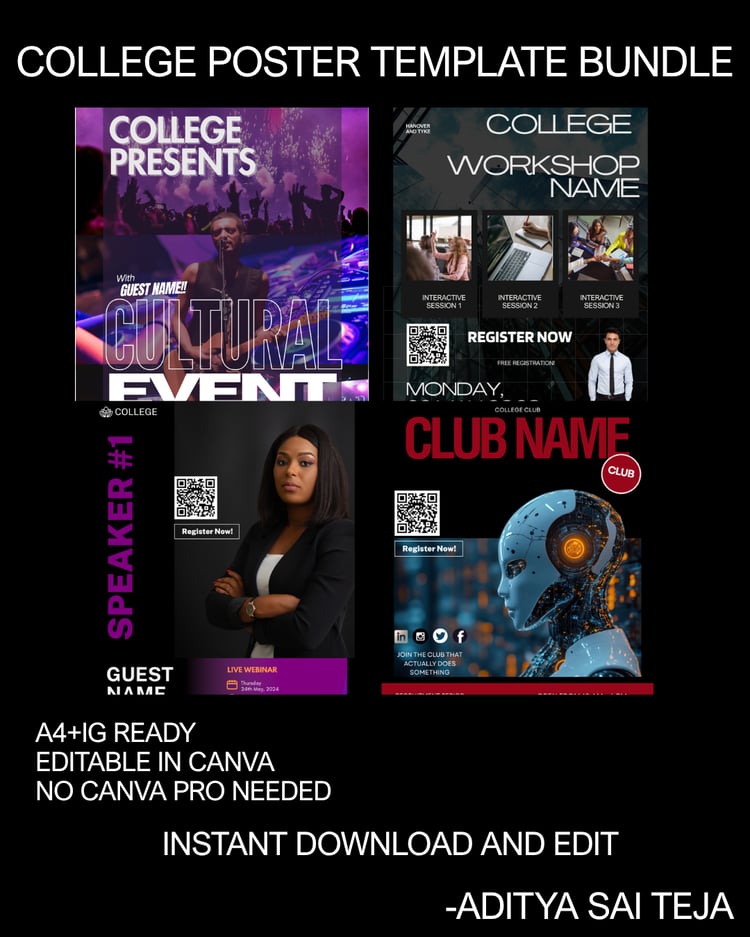 Hey there! I'm Aditya Saiteja B — a passionate creator, developer, and designer dedicated to bringing innovative digital products to life. From sleek Canva templates and event posters to advanced AI-powered solutions and creative tools, I love combining design with technology to help individuals and organizations shine online.