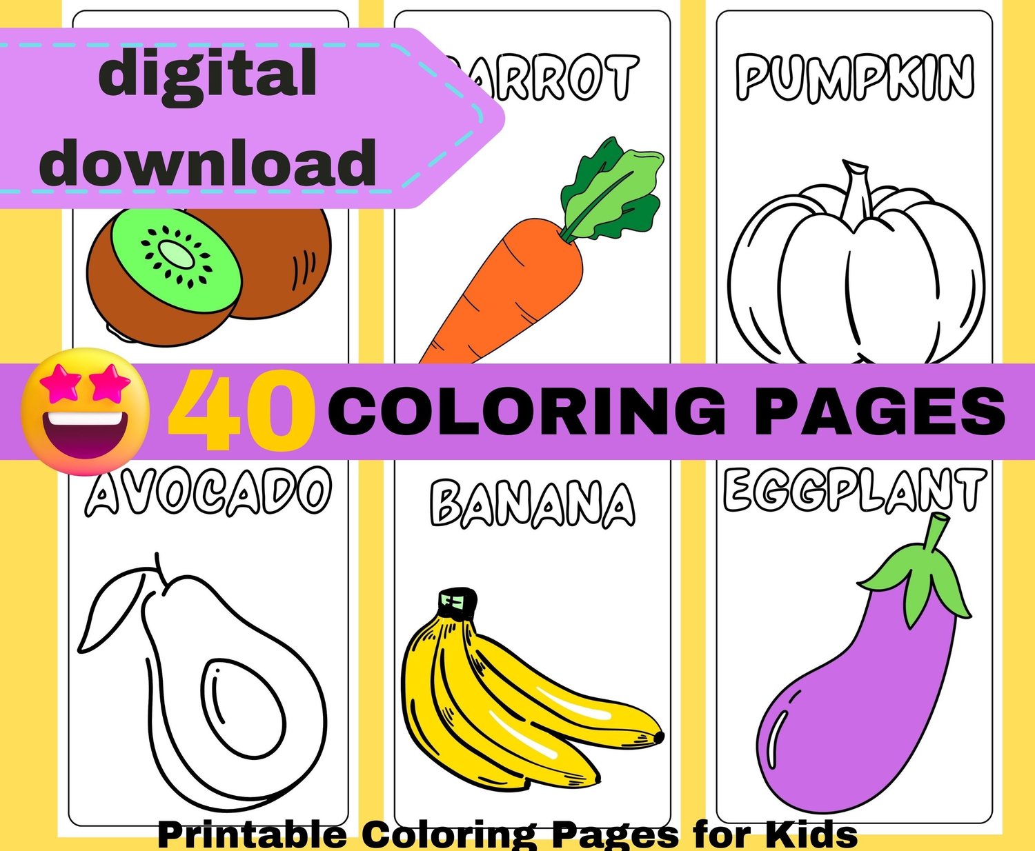 40 Fruits and Vegetables Coloring book