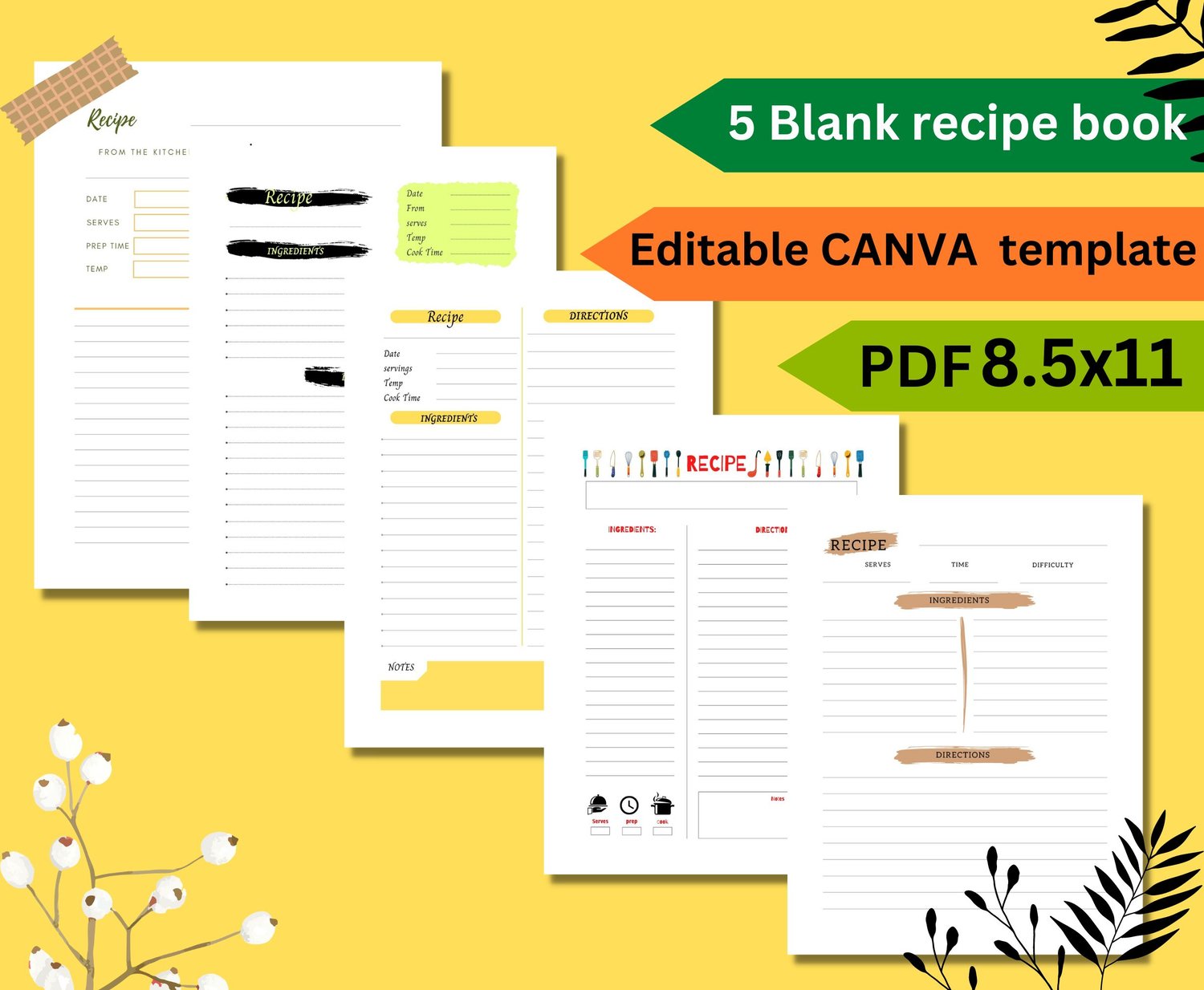 BLANK RECIPE BOOK, EDITABLE CANVA TEMPLATE