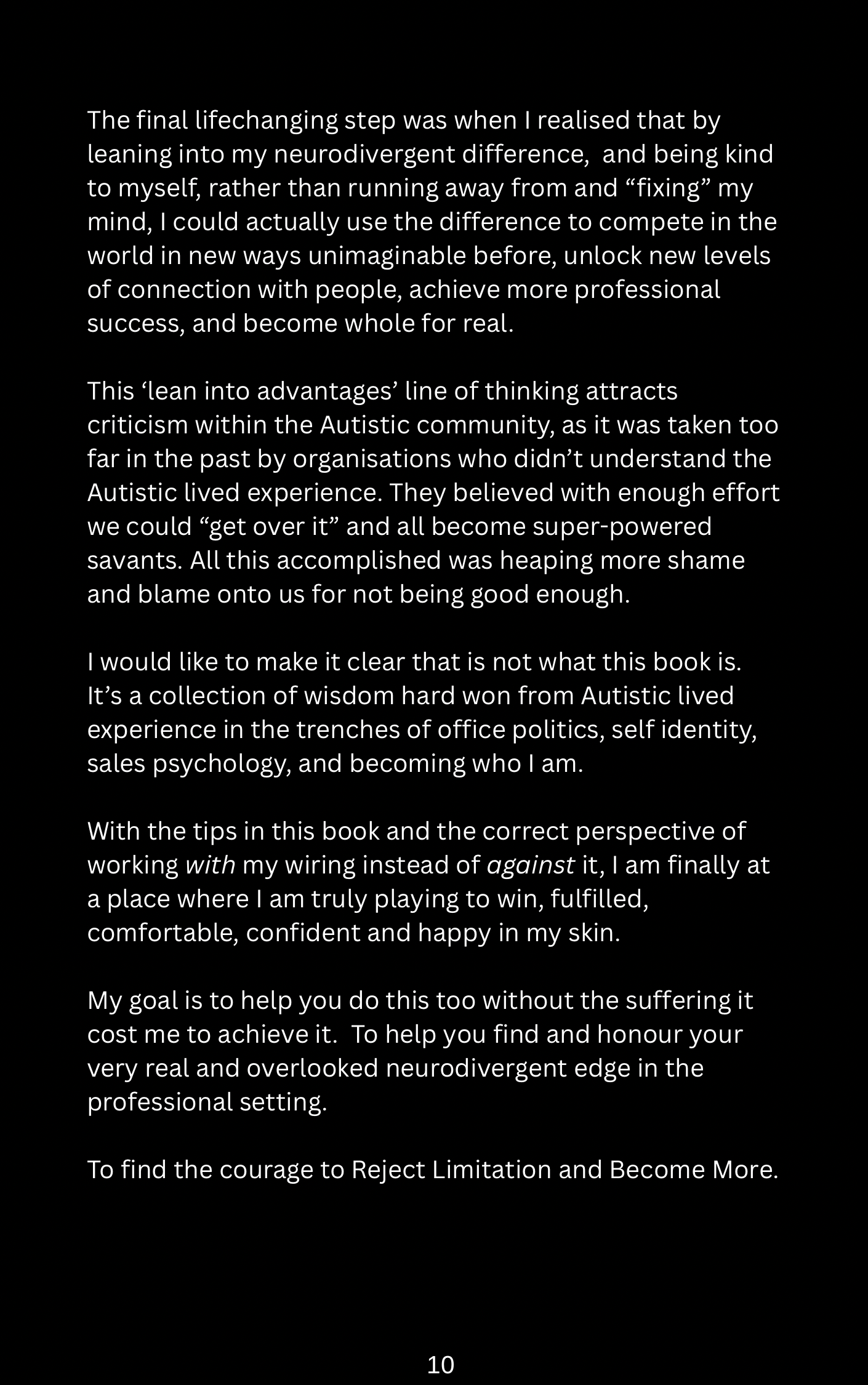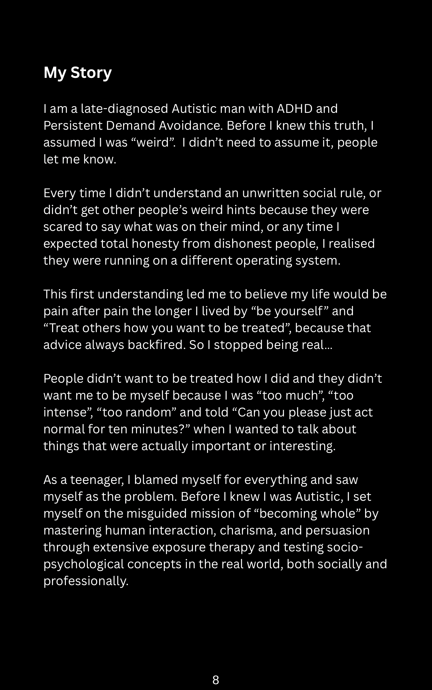 This was written from the inside so it's raw, unfiltered, and brutally honest. I don't pretend anything is fair, it was forged in autistic lived experience and written from a place of sheer frustration with the uselessness of the career guides, corporate training, other autism resources and patronizing feel-good self-help books available.