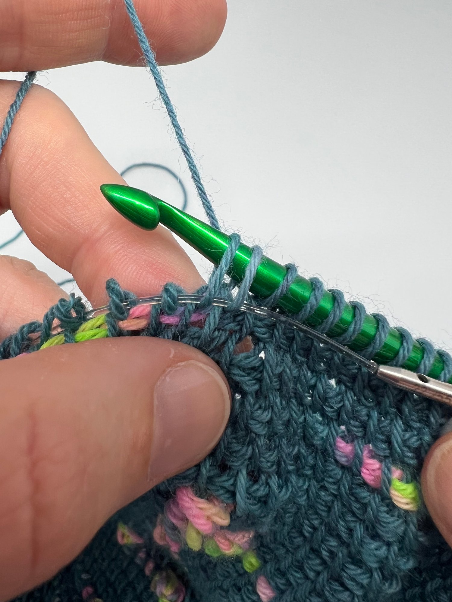 I recommend practicing this method on something smaller before you tackle a garment. Try the Bobble Cowls, the Canberra Cowl or Space Invaders before you try a garment.