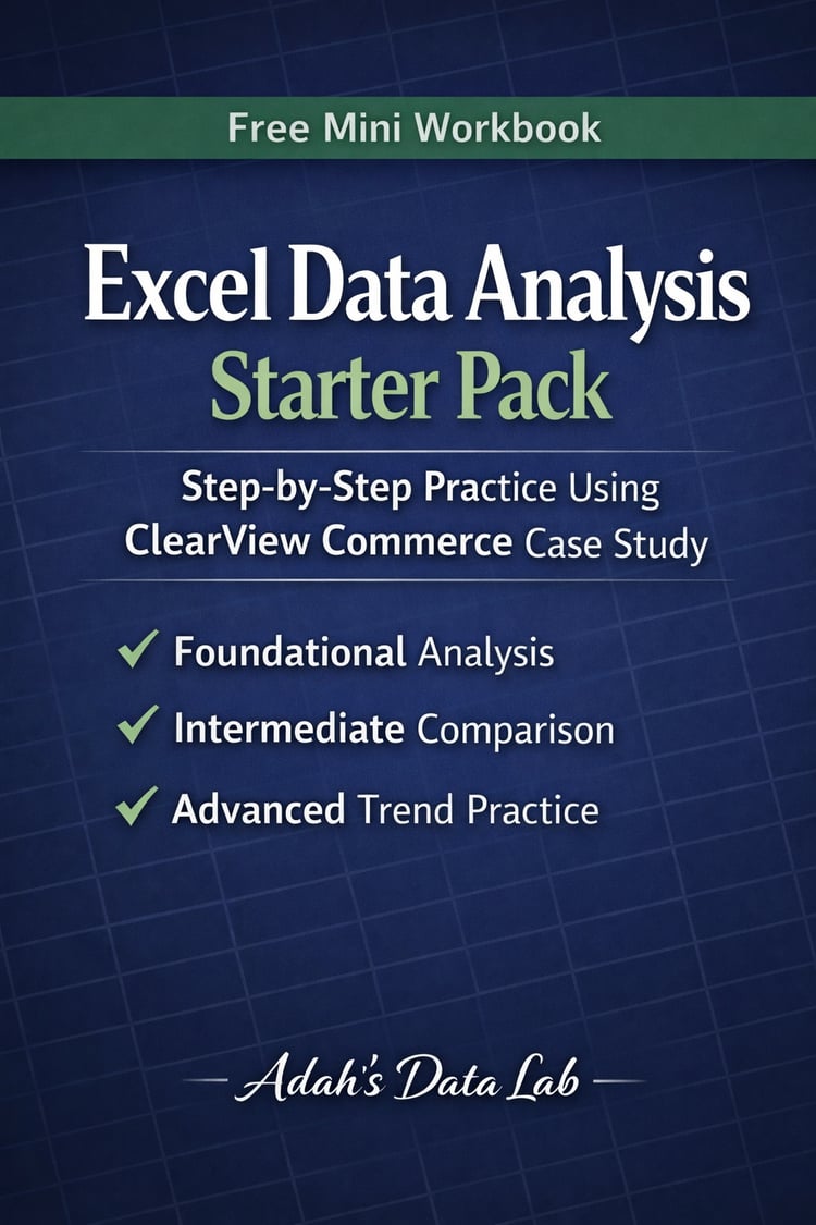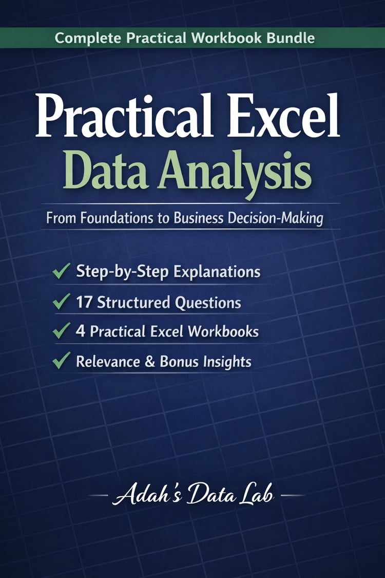 I create practical, beginner-friendly data analysis resources that focus on how data is explored, cleaned, prepared, and analyzed in real projects. My work starts with strong foundations, understanding raw data, asking the right questions, and preparing it correctly. It expands into analysis using tools such as: