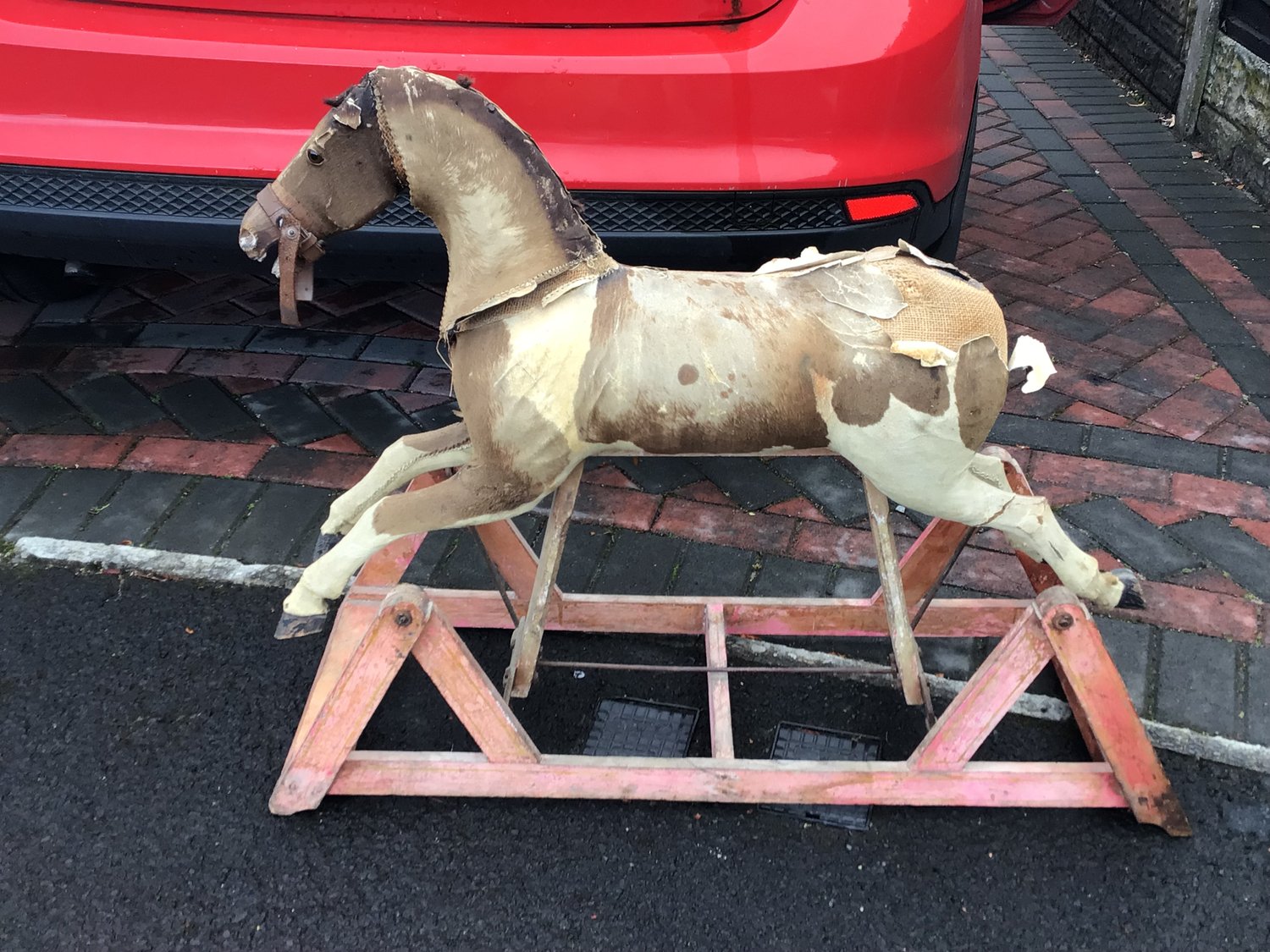 SOLD! Antique Distressed Hide Bound Rocking Horse German Early 20c