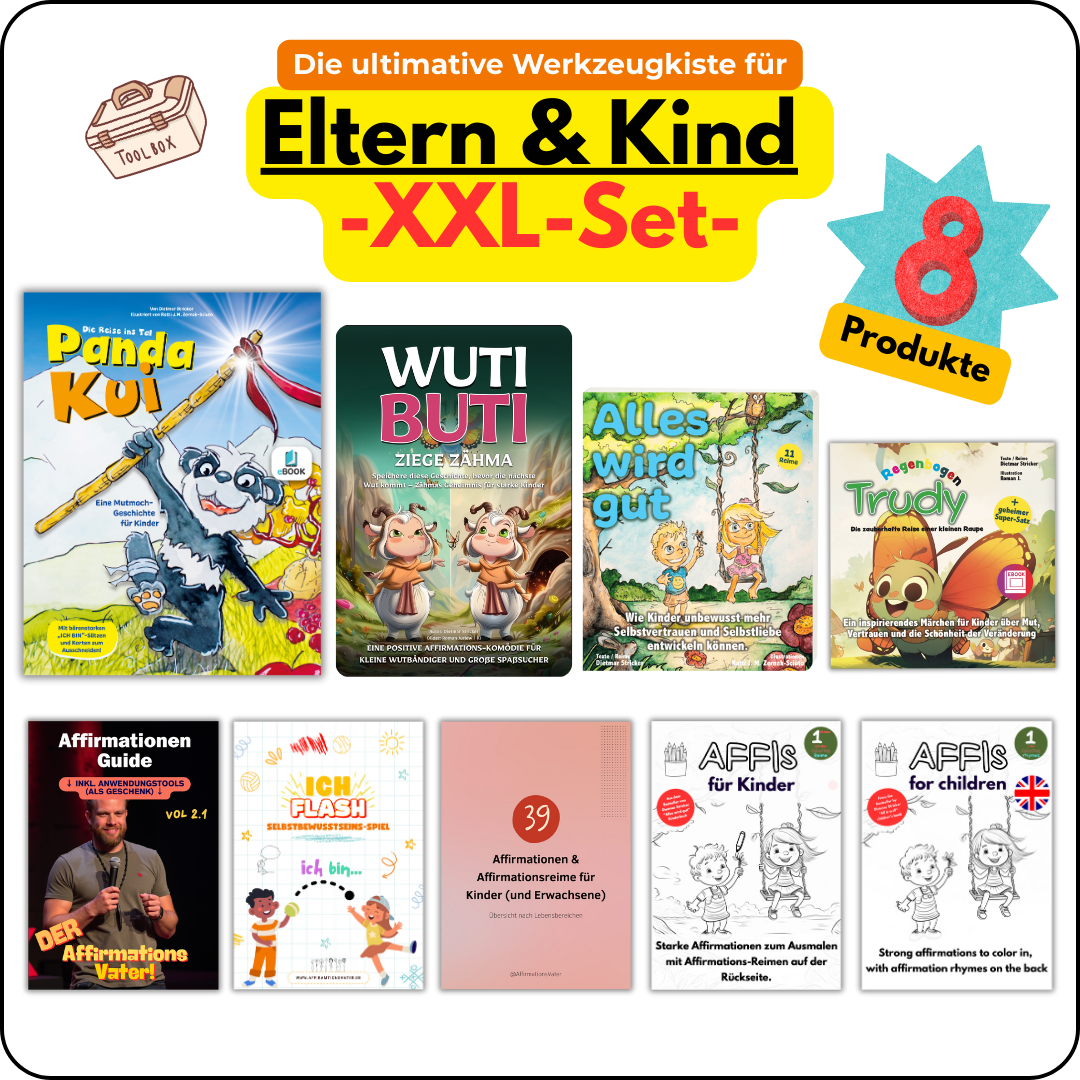 Viele starten mit dem XXL‑Set und erweitern später – zum Beispiel mit meinen Affirmationsliedern oder mit meinem Elternkurs.