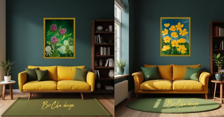 Spring has inspired me to try something new - with the help of AI, I created a sun-filled corner of a room and filled the wall with my own paintings. I hope this inspires you too!