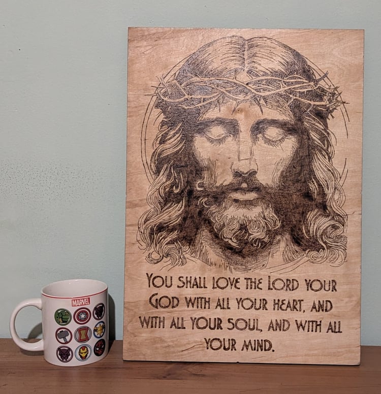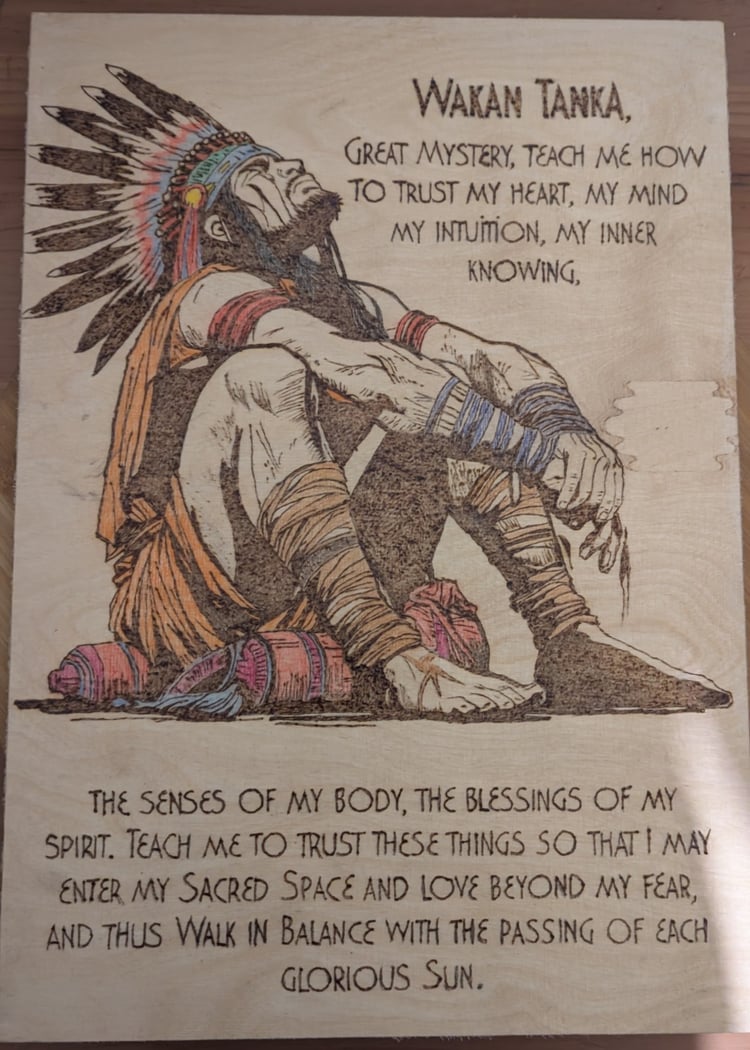 Our hand does all pyrography wood burning artwork using hand tools., We do not believe in using laser machines as this removes the divine creation given to all., We firmly understand, “what you don’t use, you lose,” so in order to keep the gift of divine creation we steer clear of machines that do the artwork for us., That’s spiritual creative laziness to us.,