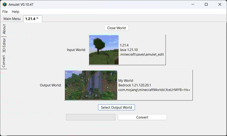 Amulet is a Minecraft world editor and converter that supports every release version since Java 1.12 and Bedrock 1.7