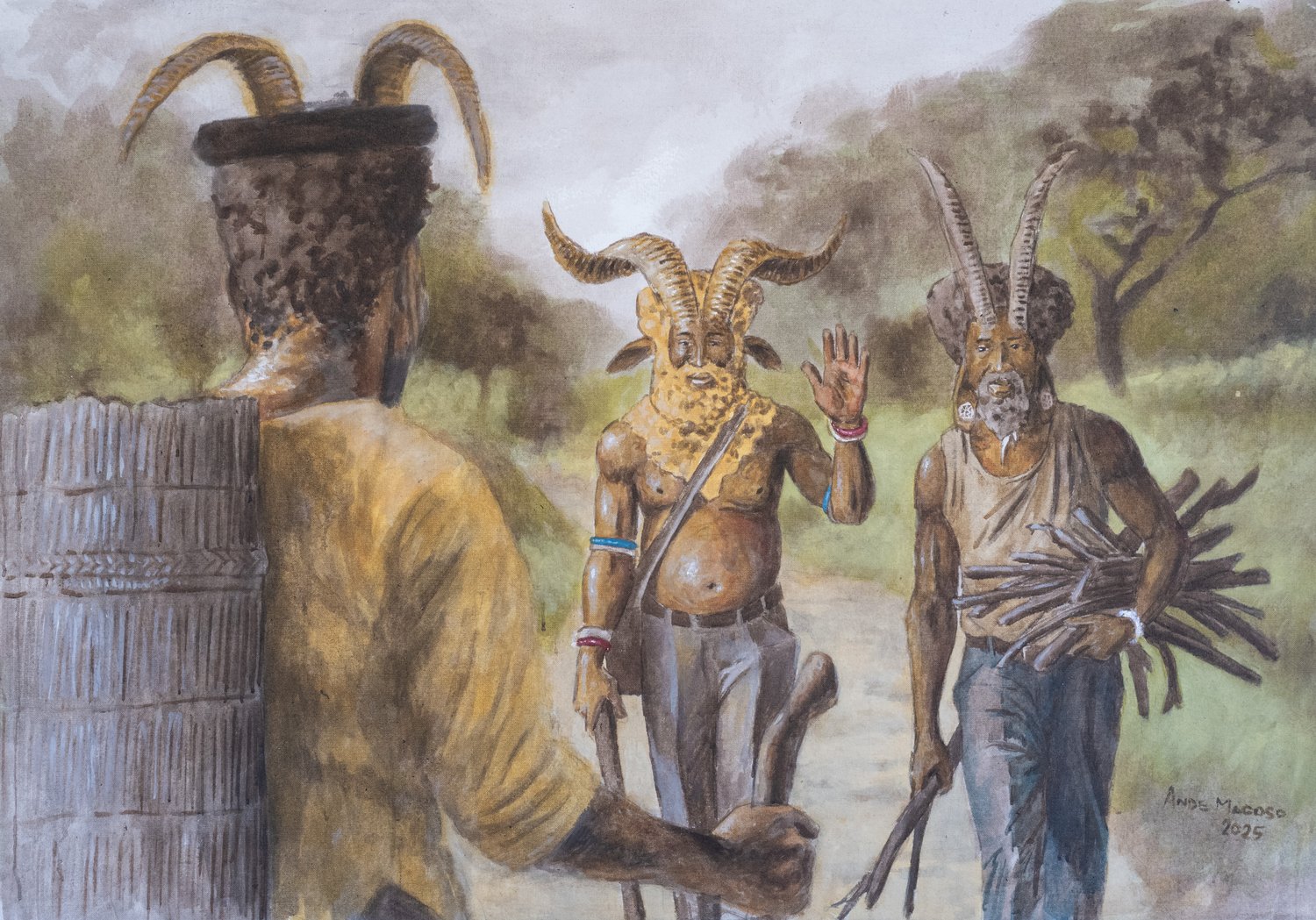 A collaborative exhibition by artist Ande Magoso and storyteller Mbali Malimela.