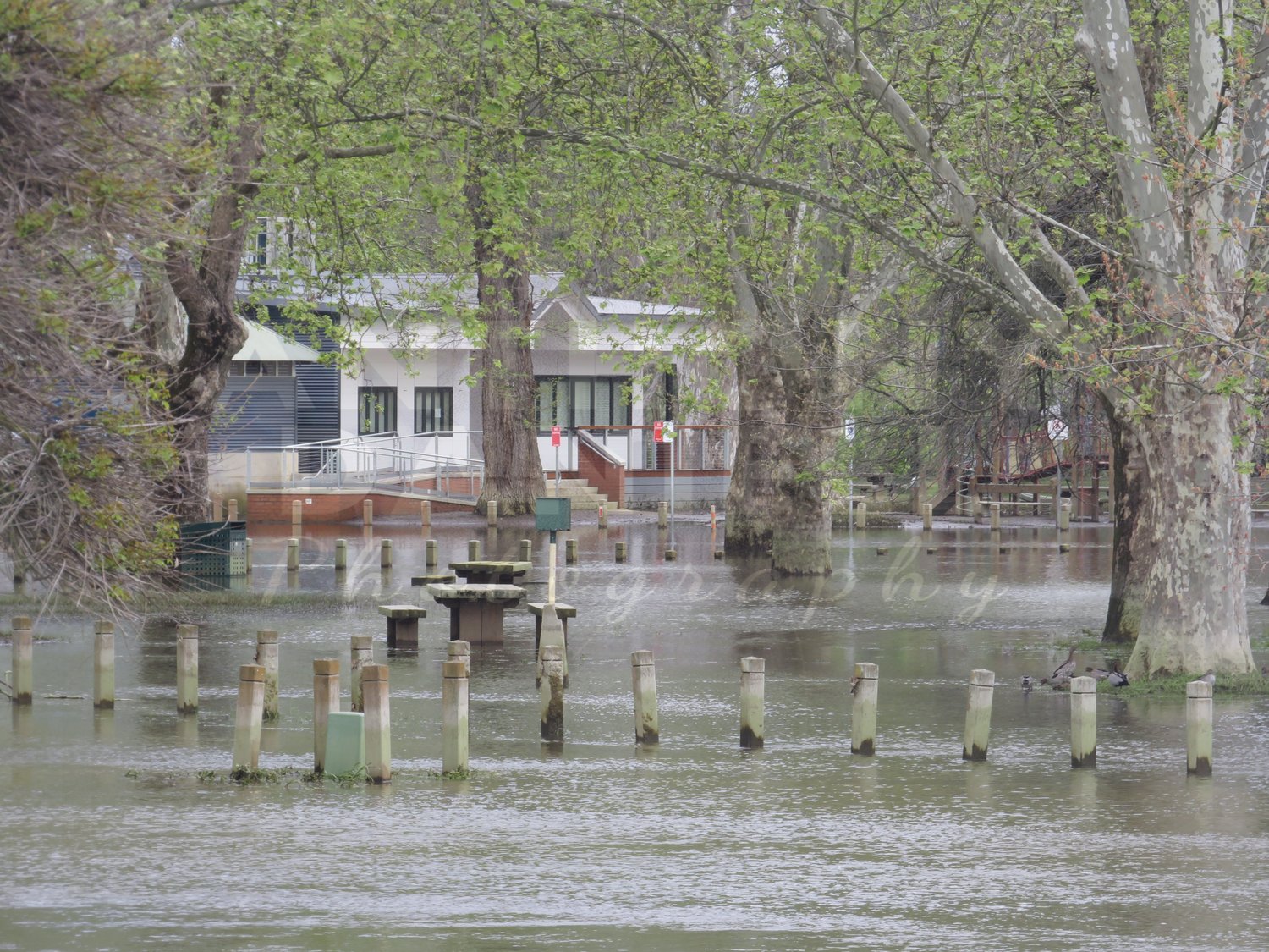 Beautiful River Deck Cafe, Flooded, Murray River Albury