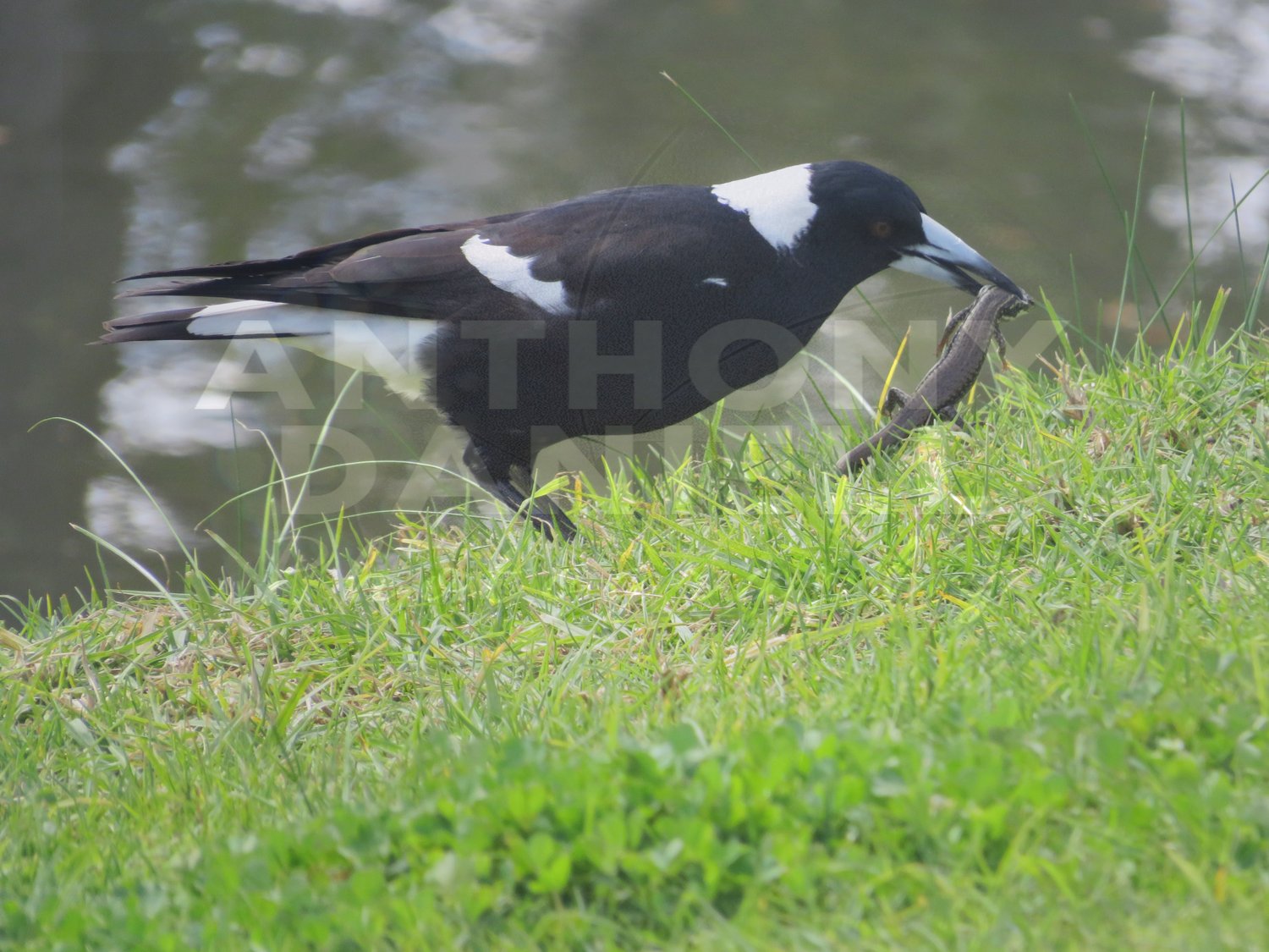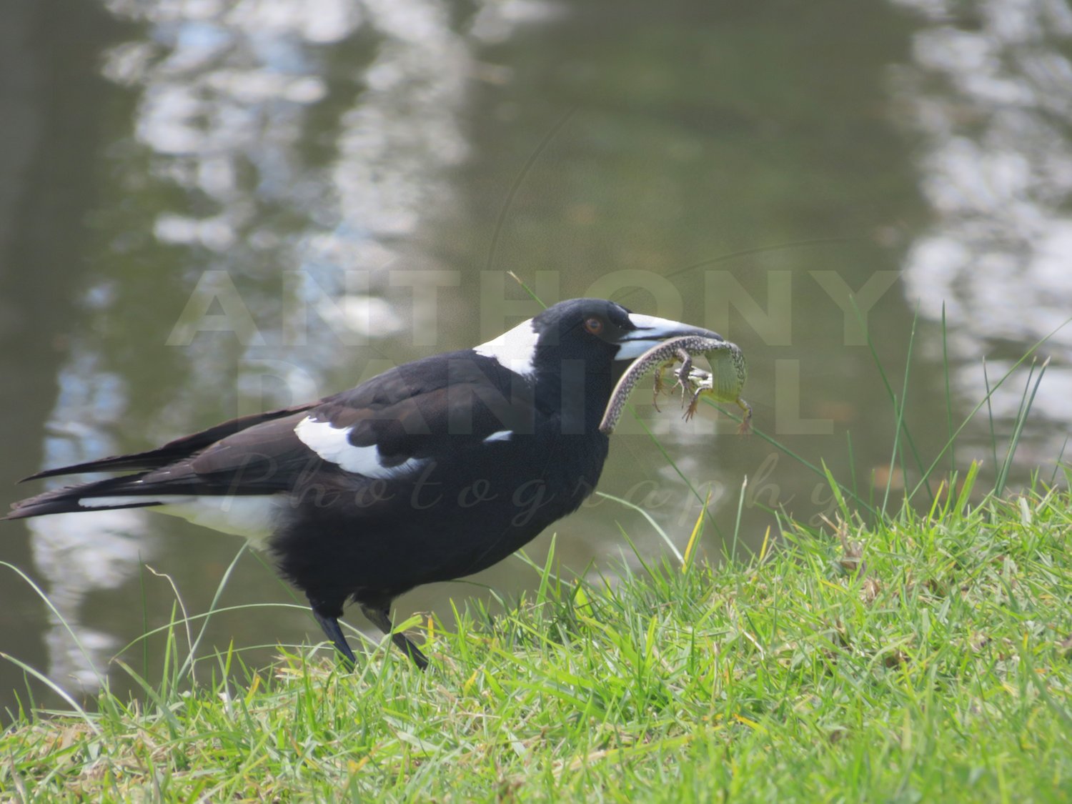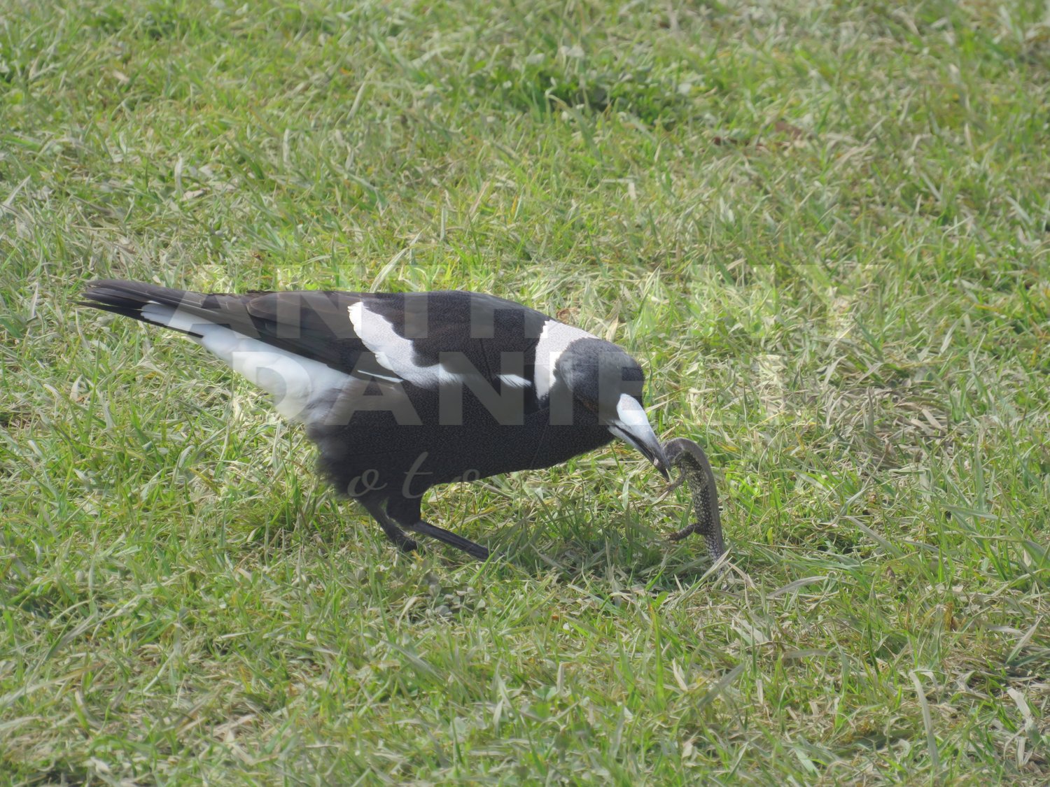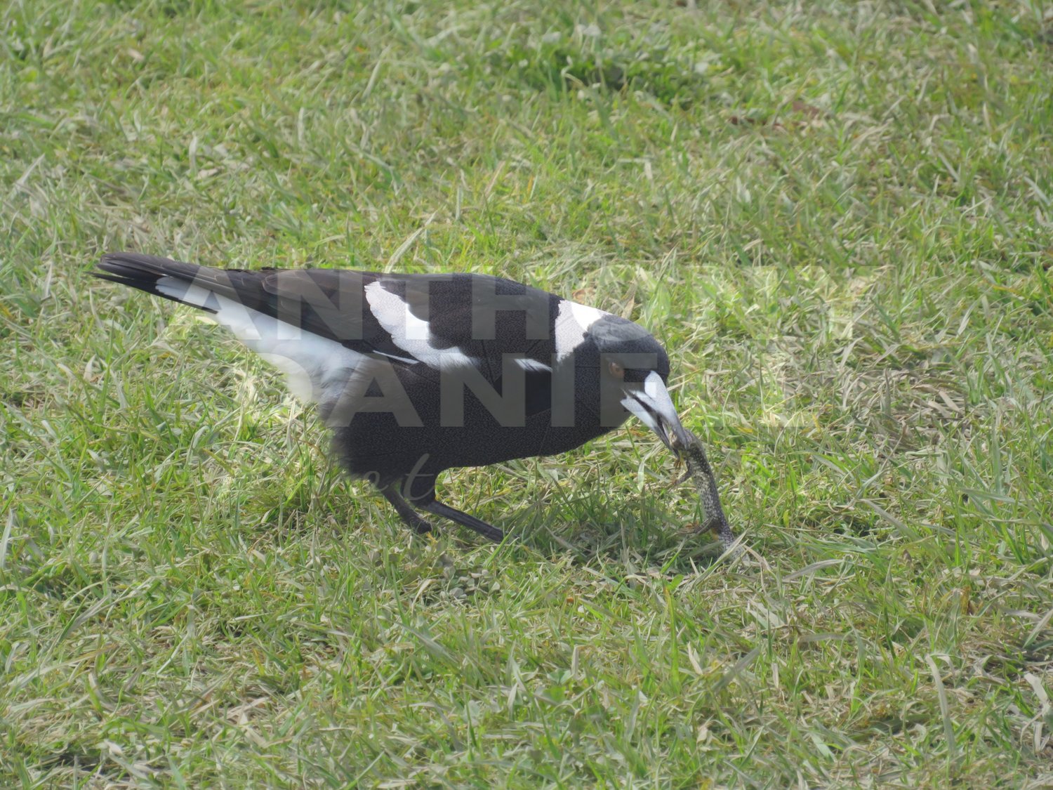 Part Of A Set Of 5, A Beautiful Magpie catching a small lizard.