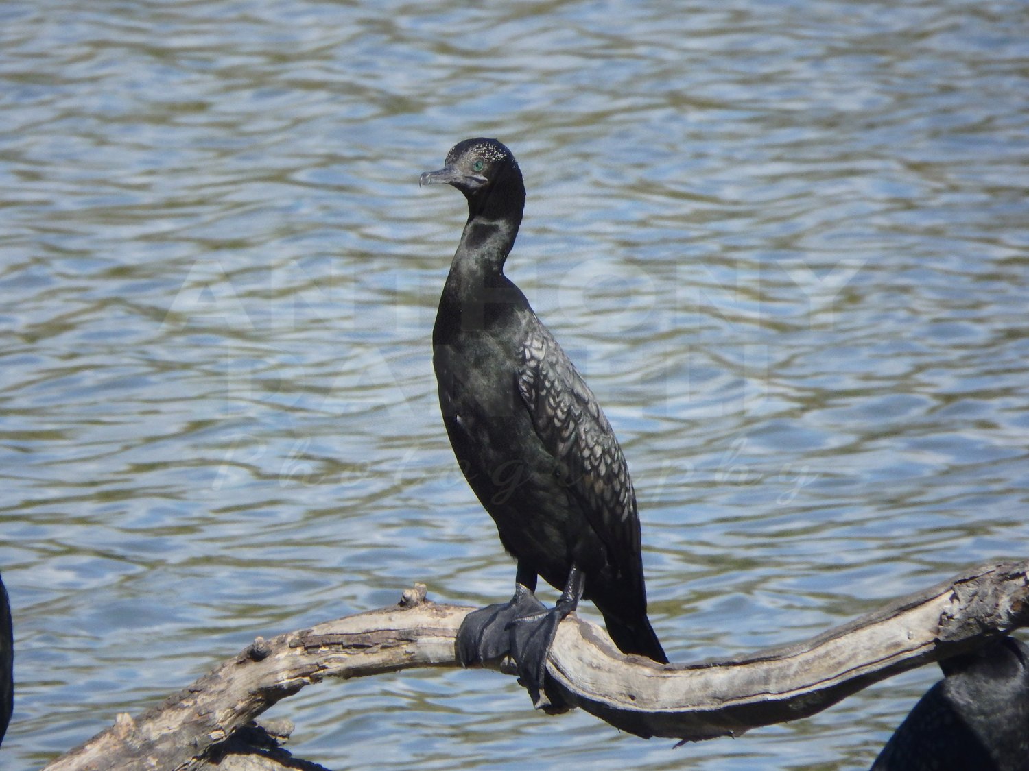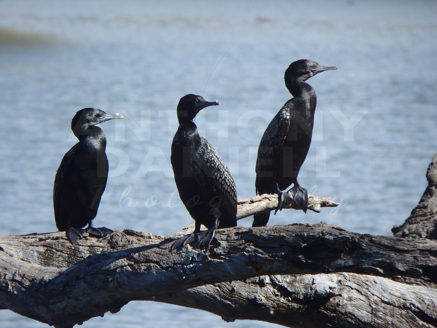 Three beautiful black common cormorants, Belvoir Park Lake.