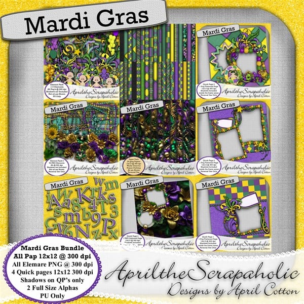 Here are my Mardi Gras Products. Some are Freebies On Sale Mardi Gras - Bundle Package $8.00 $4.00 On Sale Mardi Gras 1 $5.00 $2.50 On Sale Mardi Gras 2 $4.00 $2.00 On Sale Mardi Gras - Element Pack - 1 $3.00 $1.50 On Sale ...