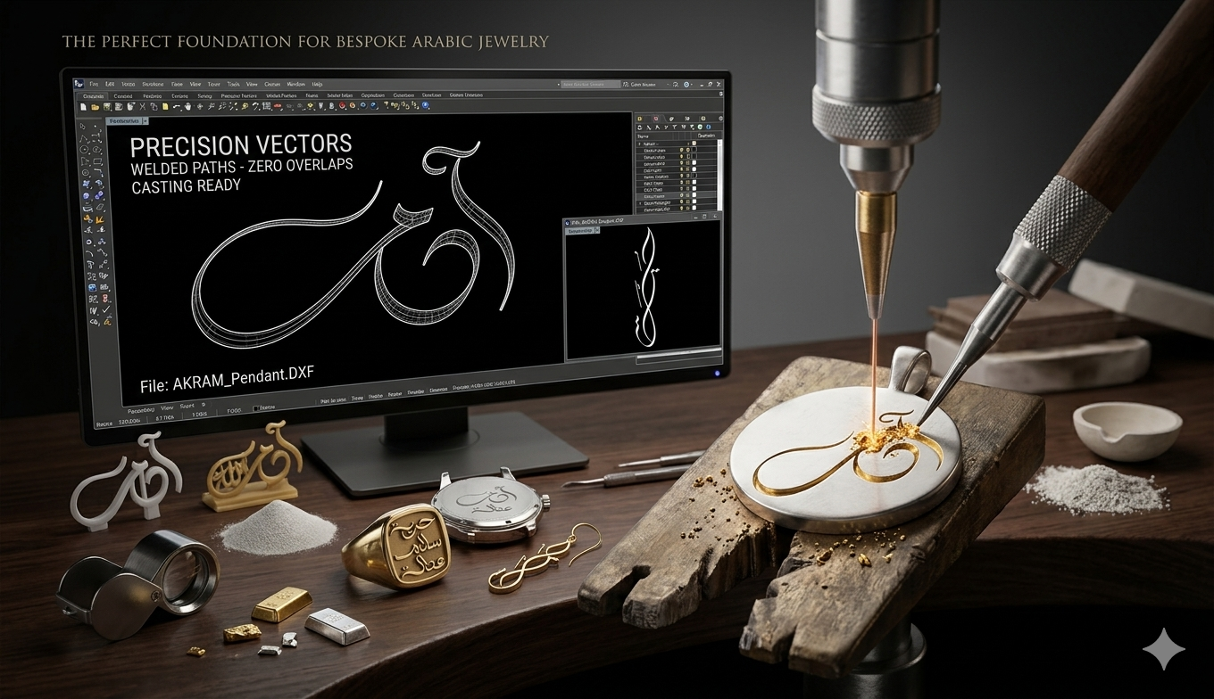 Ready-to-use, commercial-grade Arabic typography engineered for ad agencies, laser cutters, jewelry makers, and modern brands.