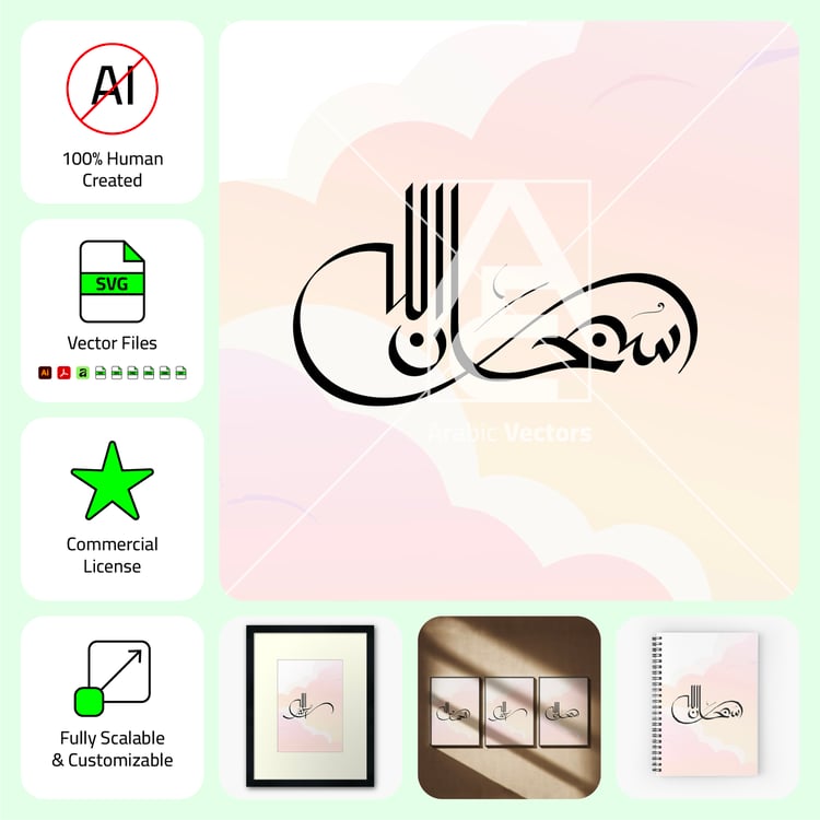 Discover elegant Islamic Arabic calligraphy designs created for home decor, prayer rooms, and meaningful interior spaces. All products are delivered as high-quality digital vector files, ready for professional printing and customization.