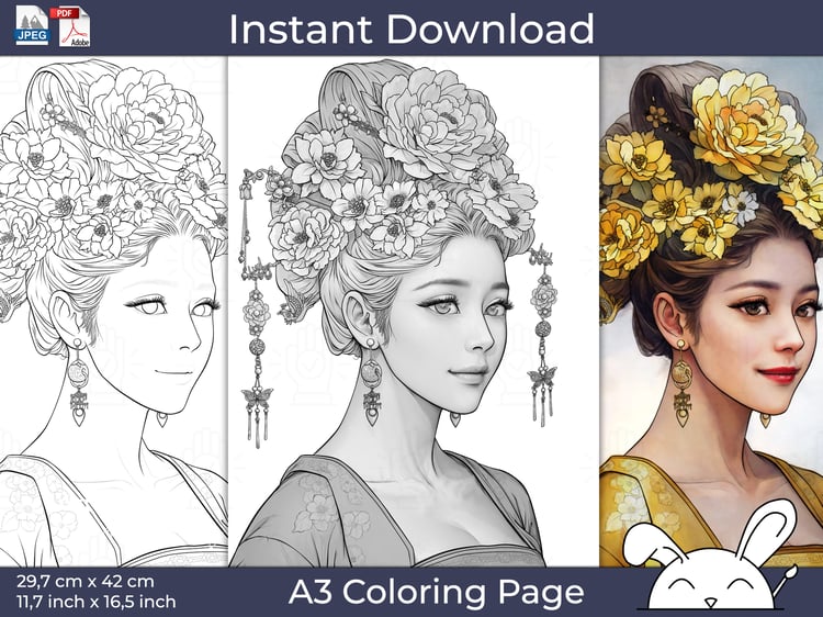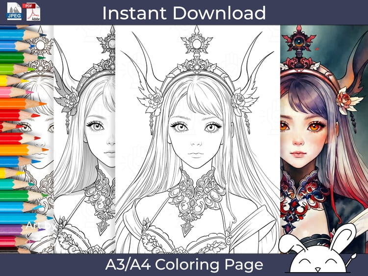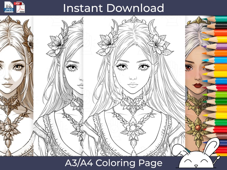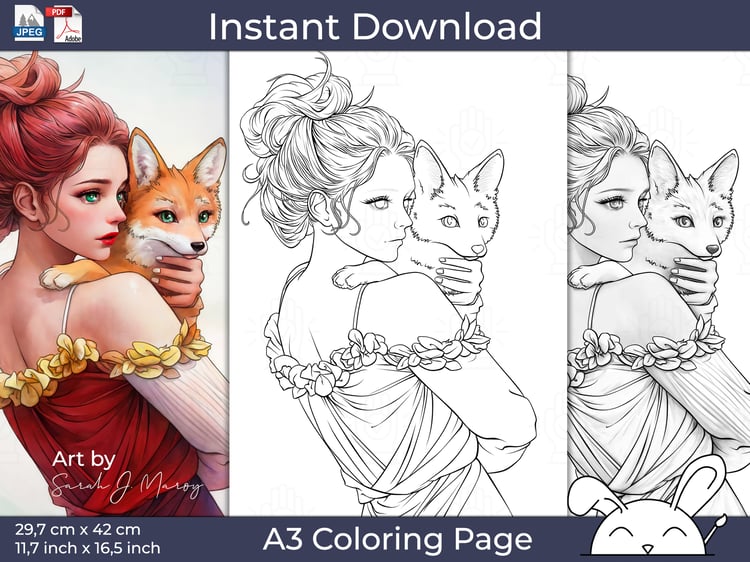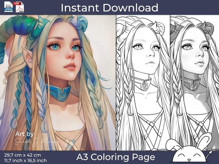 Digital art!* This illustration has been hand-drawn and digitally edited for the best result. The image linework is best printed on A4 size paper. I also recommend setting the highest print quality. Let yourself be carried away by your imagination and enjoy coloring.
