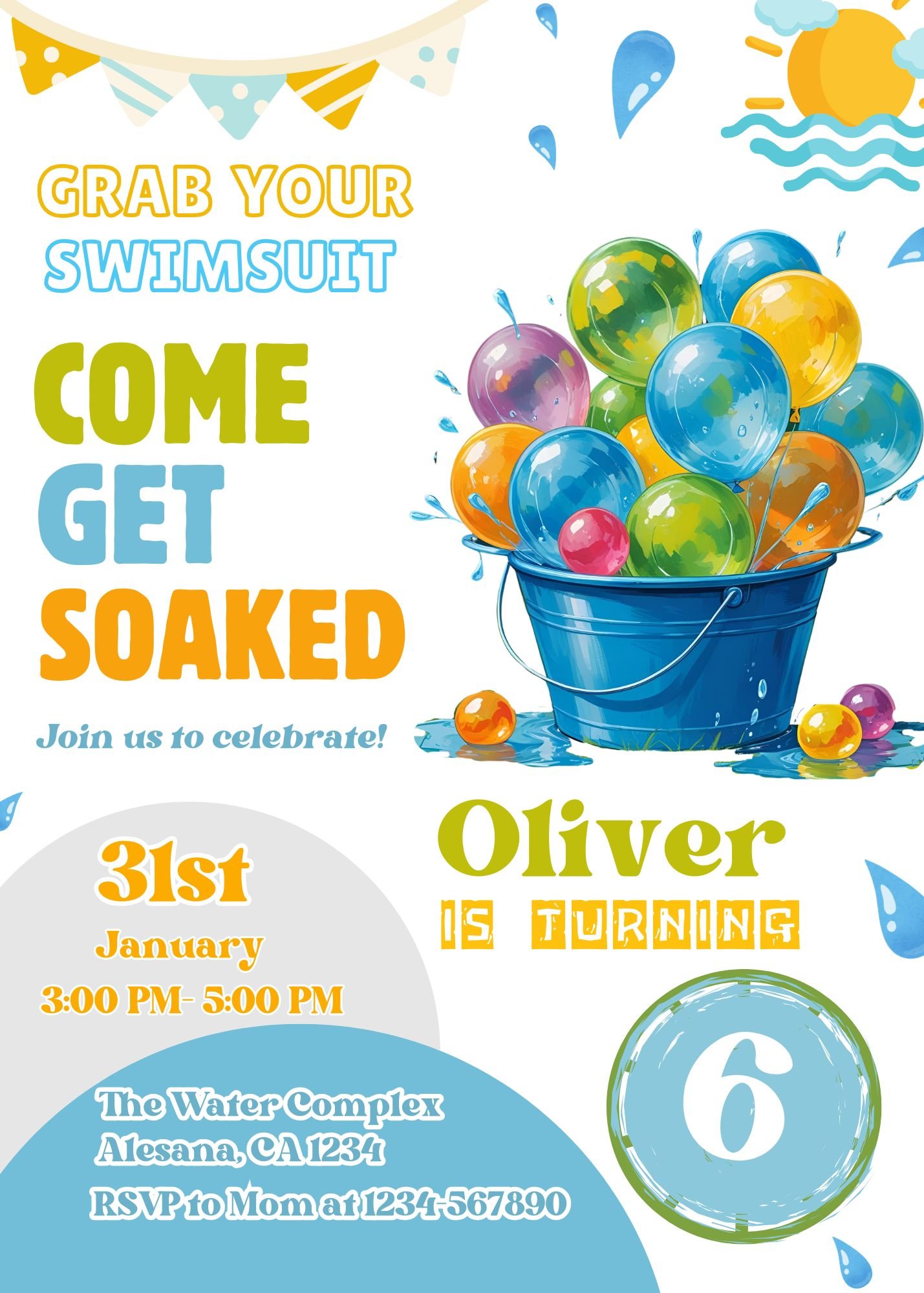 Water Balloon Invitation, Water Balloon Birthday Bash - Soaked Water Fight Splash Party, DIGITAL Printable, Editable With Canva
