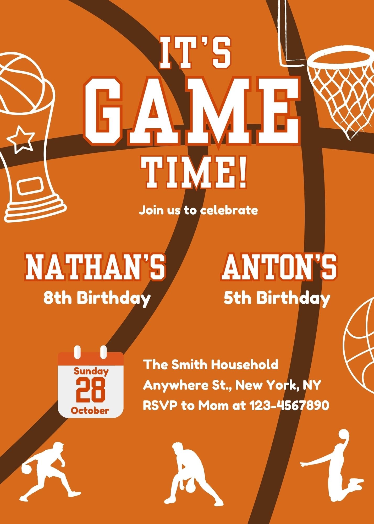 Joint Basketball Invitation, Basketball Birthday Invitation, Twins Birthday Invitation, Sports Invitation, Instant Editable Canva Invite