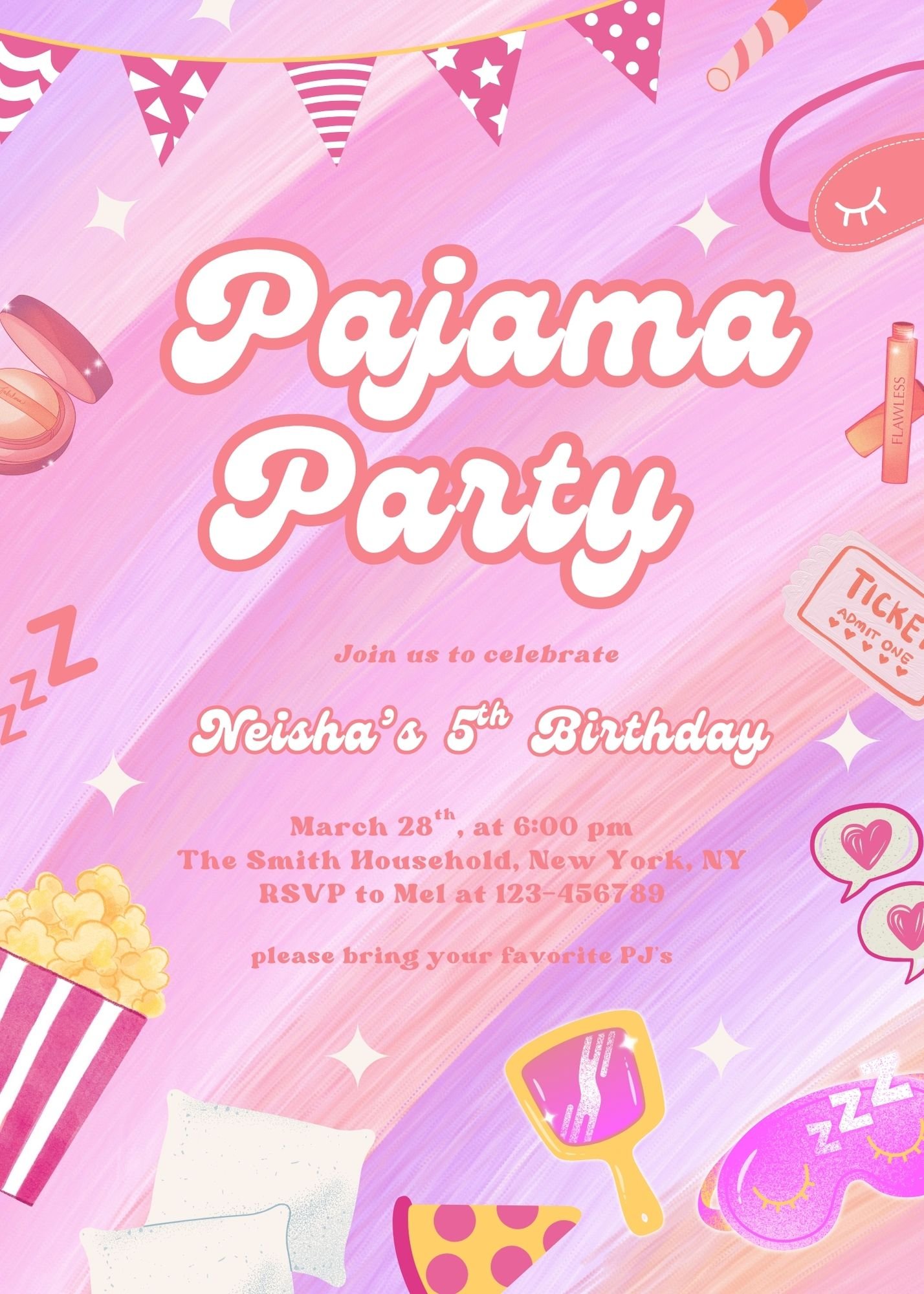 EDITABLE SLEEPOVER Invitation, Slumber Party, Pajama Party, Birthday Girl Pink Invitation, Printable Invite Template, ANY age, diy