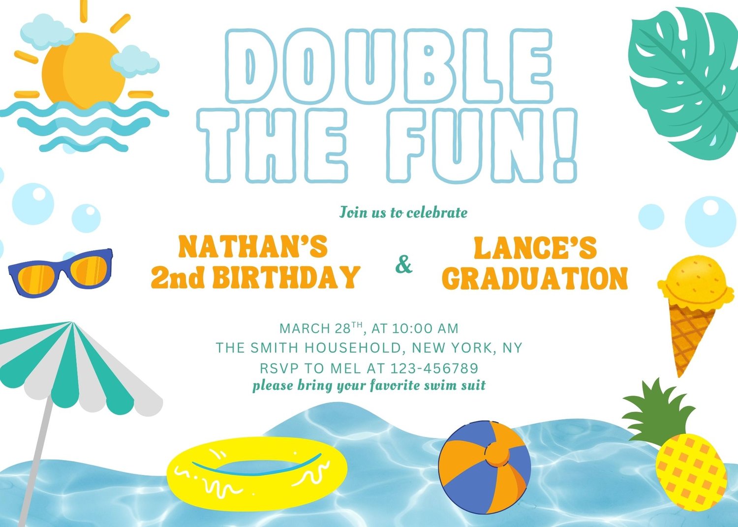 Boys Double Celebration, Editable Splish Splash Invitation, Beach Double Party Invitation Printable, Sibling Birthday and Graduation Invite