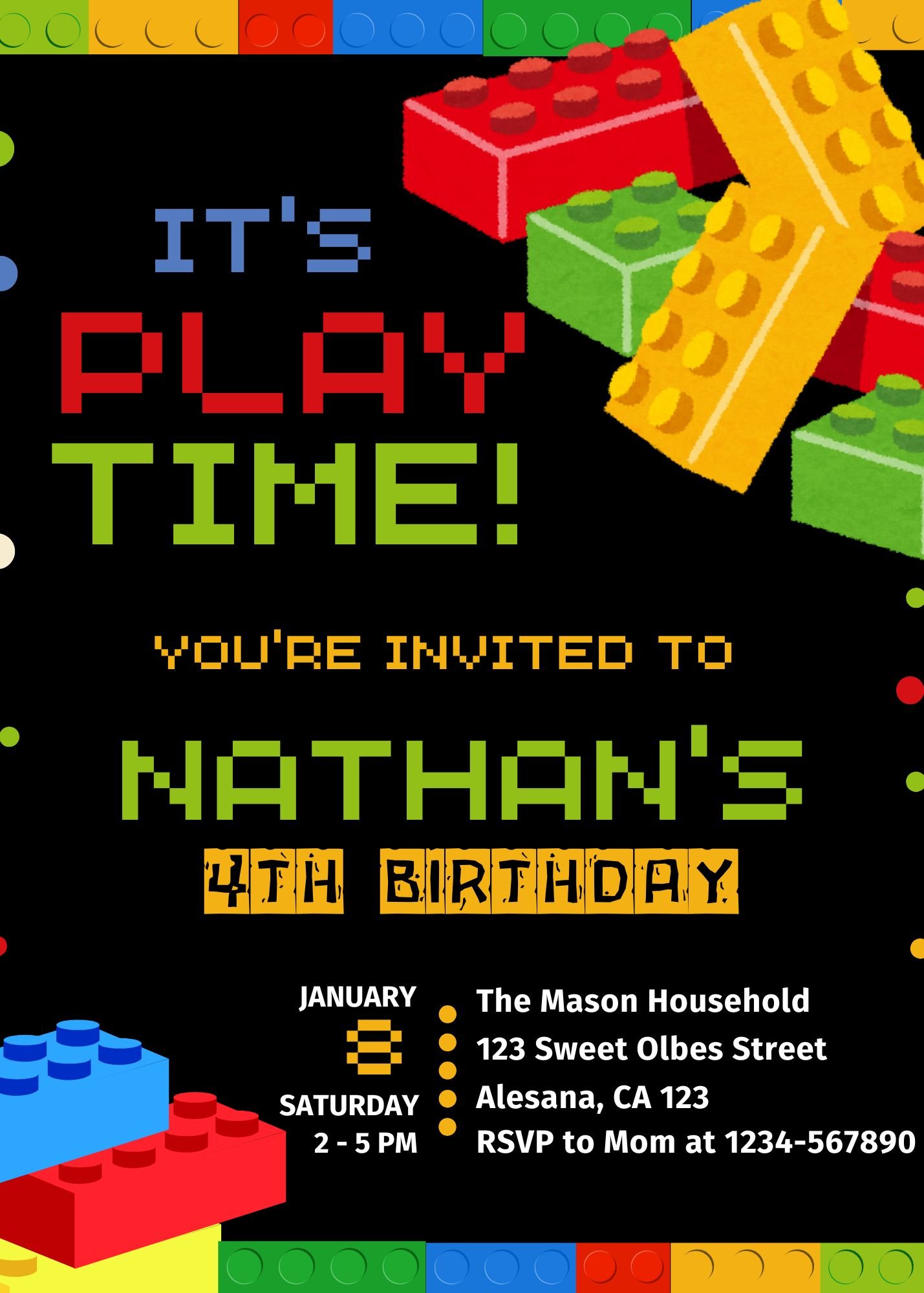 Lego Birthday Invitation Boys Building Blocks Editable Birthday Invitation, Blocks Party Invite,Boys Birthday Theme, Building Block Invite, Boys Printable Invitation