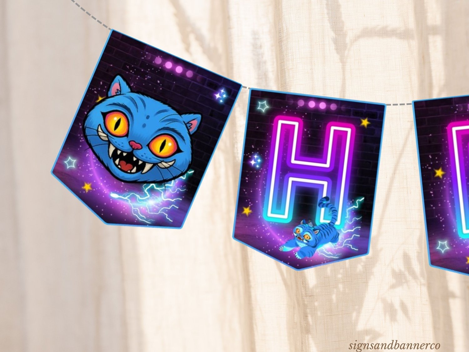 K-pop Demon Hunter Derpy Happy Birthday Banner, DIY Derpy Tiger Party Banner Printable, KPop Party Decor, KPop Bday Party Supplies