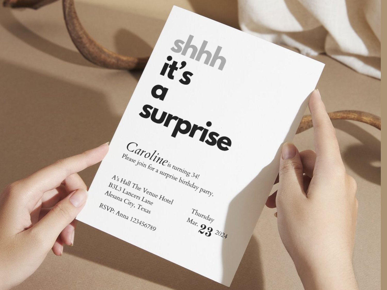Surprise Invitation, Editable Surprise Birthday Invitation, Adult Typography Shhh its a Surprise Invite Instant Digital Download
