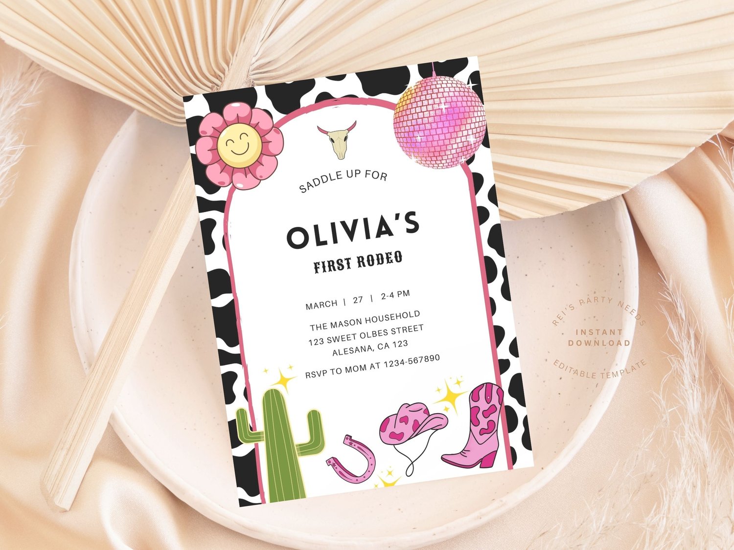 Cowgirl Birthday Invitation, Nashville Party, Pink Cowgirl Party Invite, Space Cowgirl Birthday, Disco Rodeo Invite, Editable Canva Template