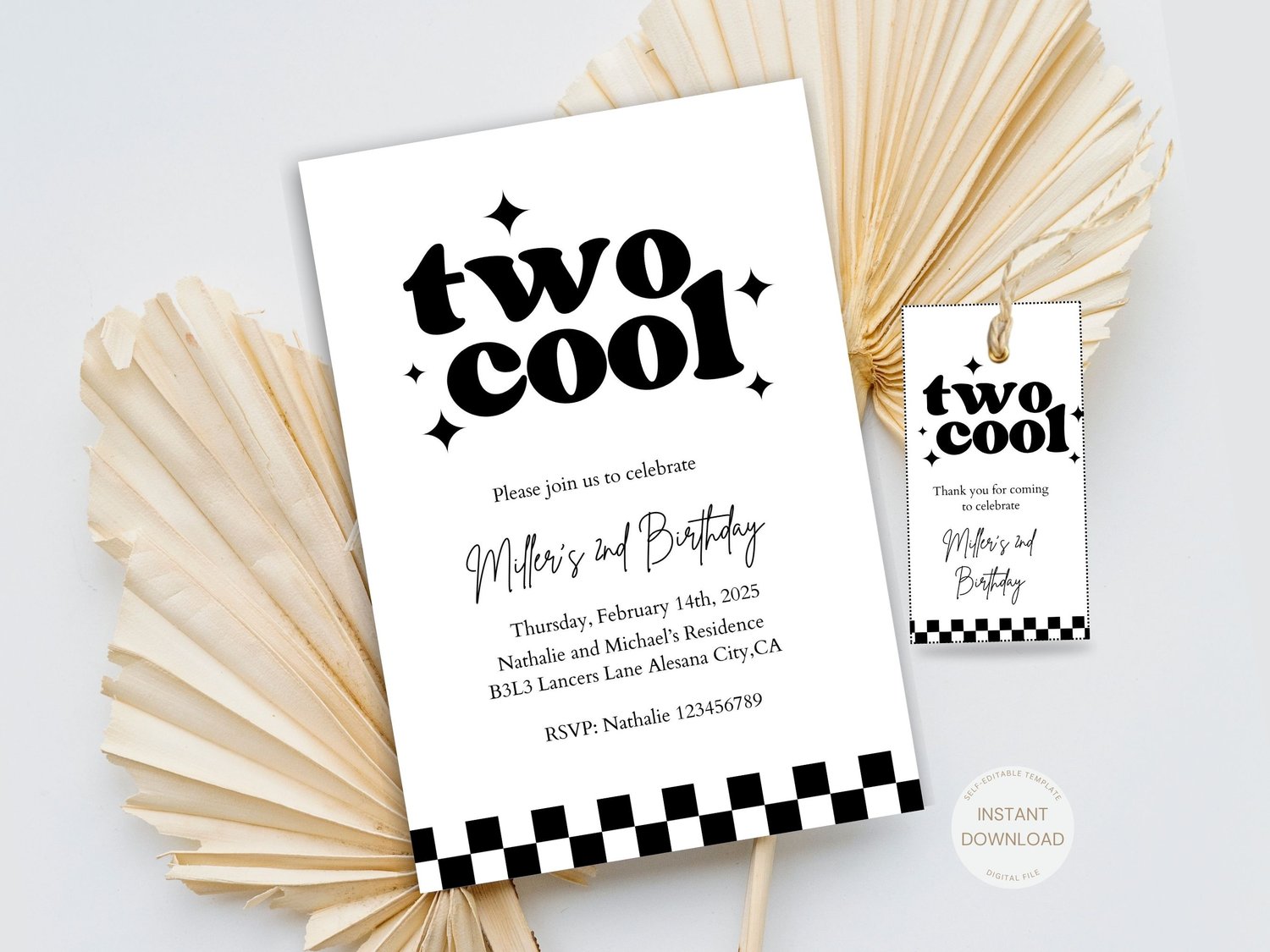 Two Cool Birthday Invitation, Digital Invite, Boy 2nd Birthday, Smile Face Birthday, Two Cool Invitation with Thank You Tag