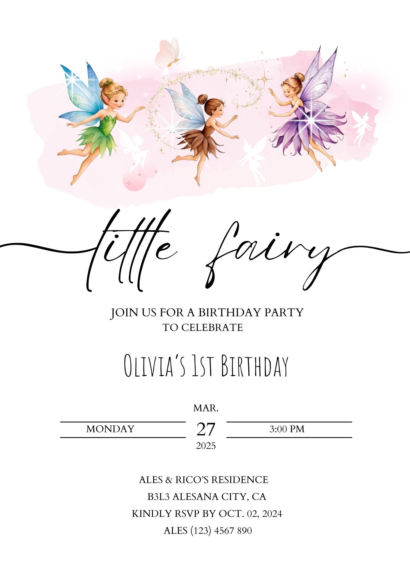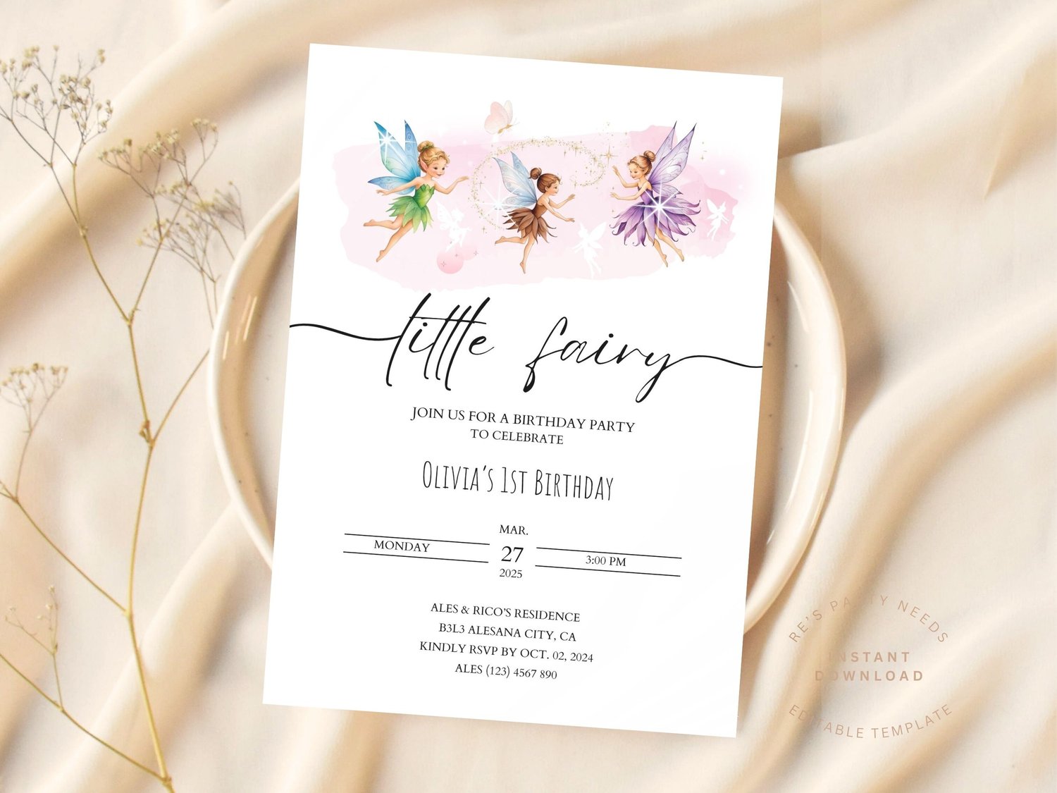 Editable Little Fairy Birthday Invitation | Girl Fairy Party Invite | 1st Birthday | Digital Download | Printable Template