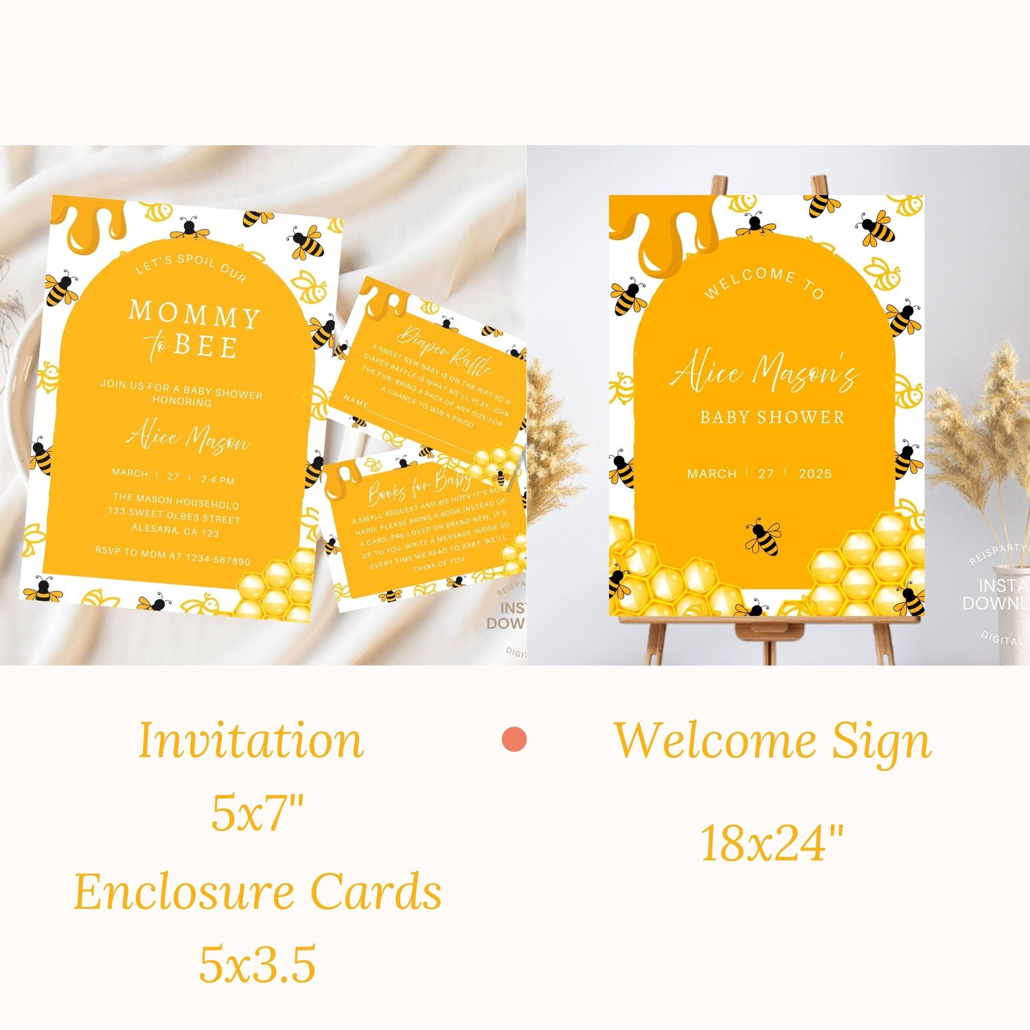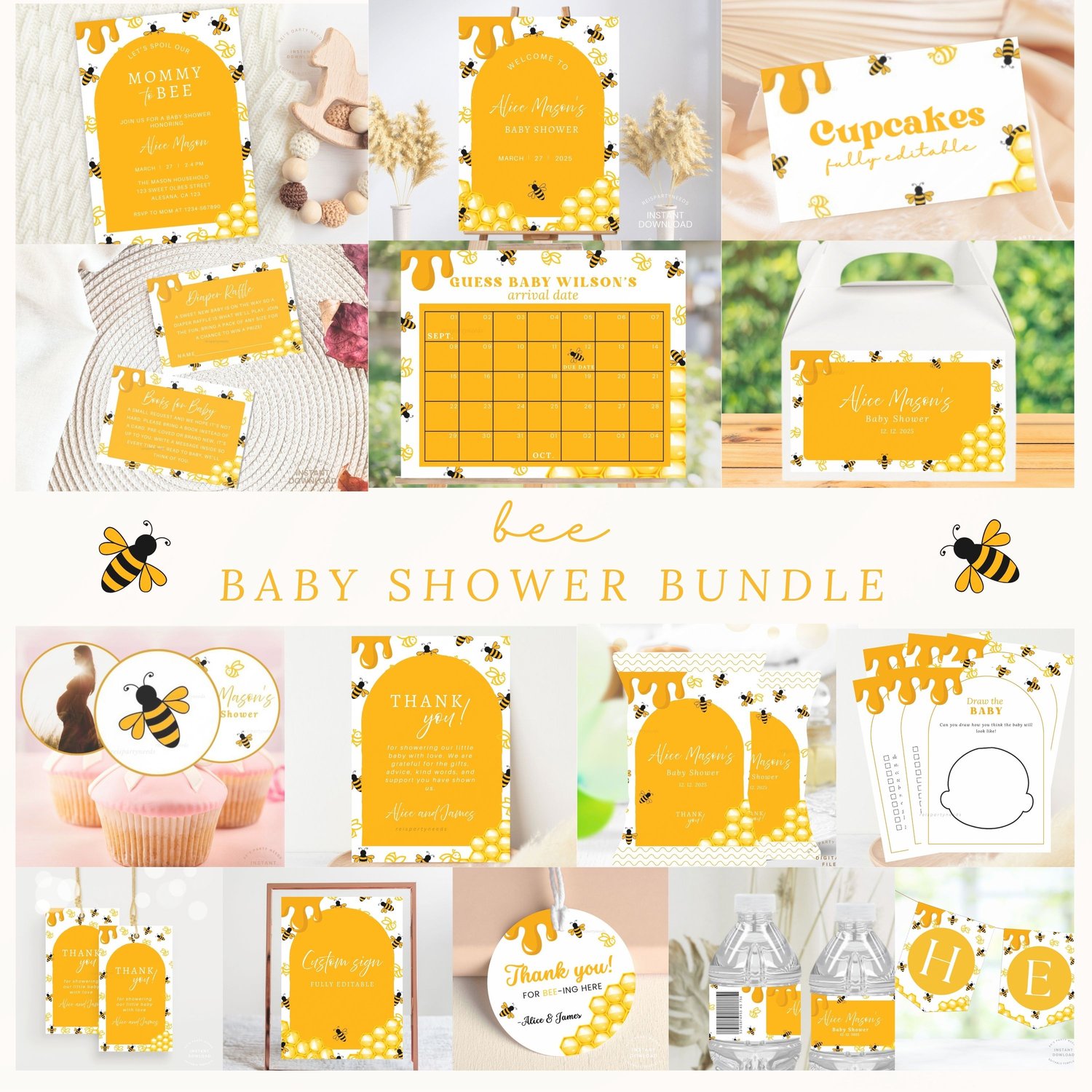 Bee Baby Shower Bundle, Mommy to Bee Shower Decorations, Editable Bee Baby Shower Games & Signs, Honey Bee Baby Shower Printable Set