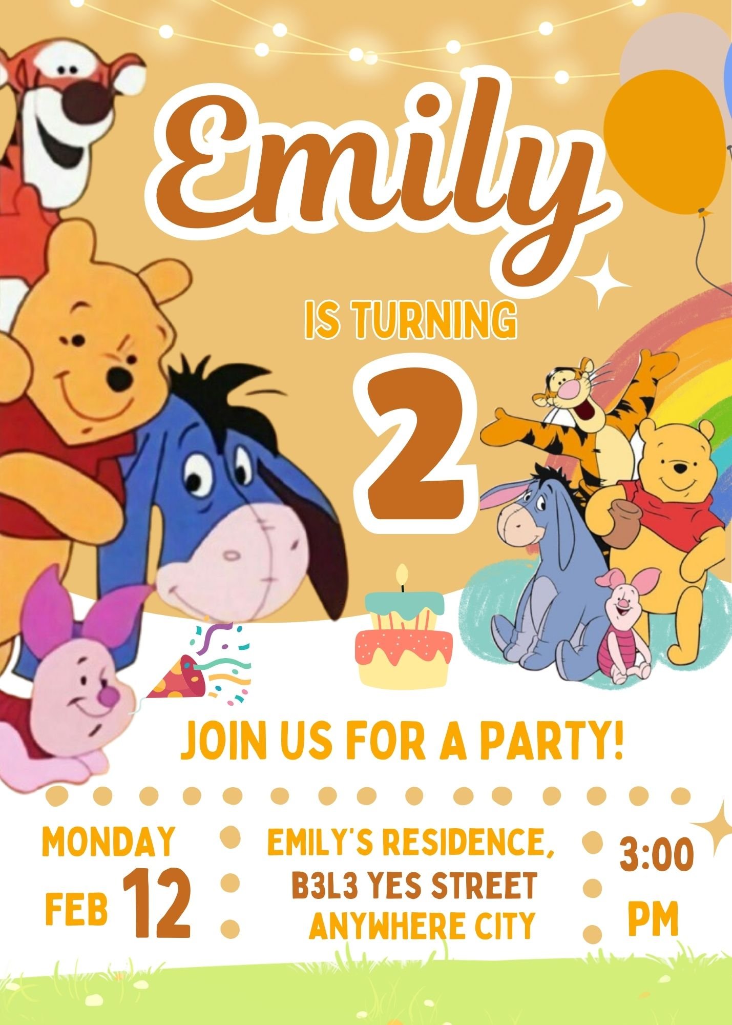 Winnie the Pooh Birthday Invitation Template • Pooh Bear Party Invite • Editable Kids Birthday Invite • Canva Birthday Invitation • 2nd Birthday Party Invite