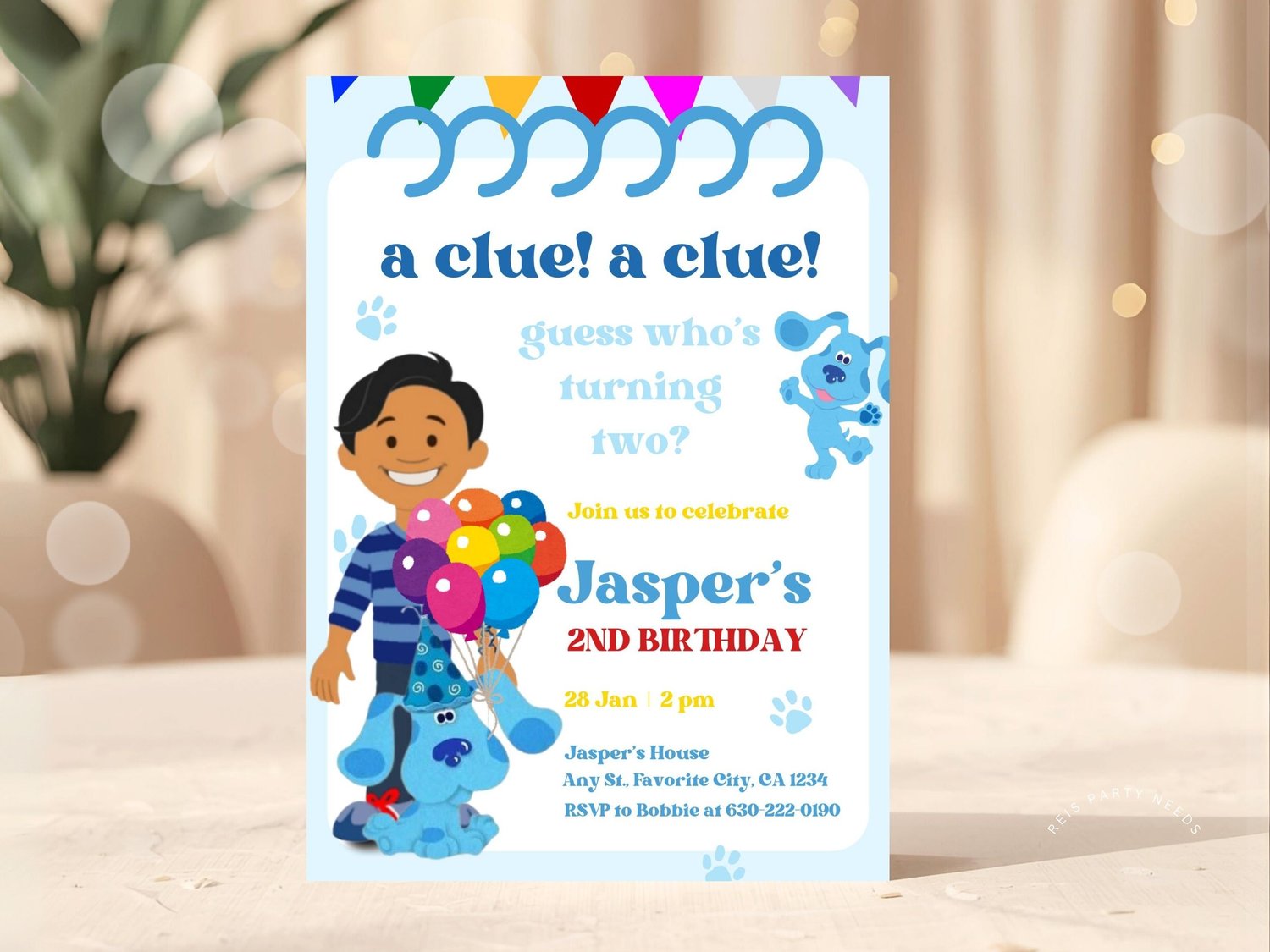 Blue’s Clues Birthday Invitation Template – Editable Canva Invite for 2nd Birthday Boy, Guess Who’s Turning Two Party