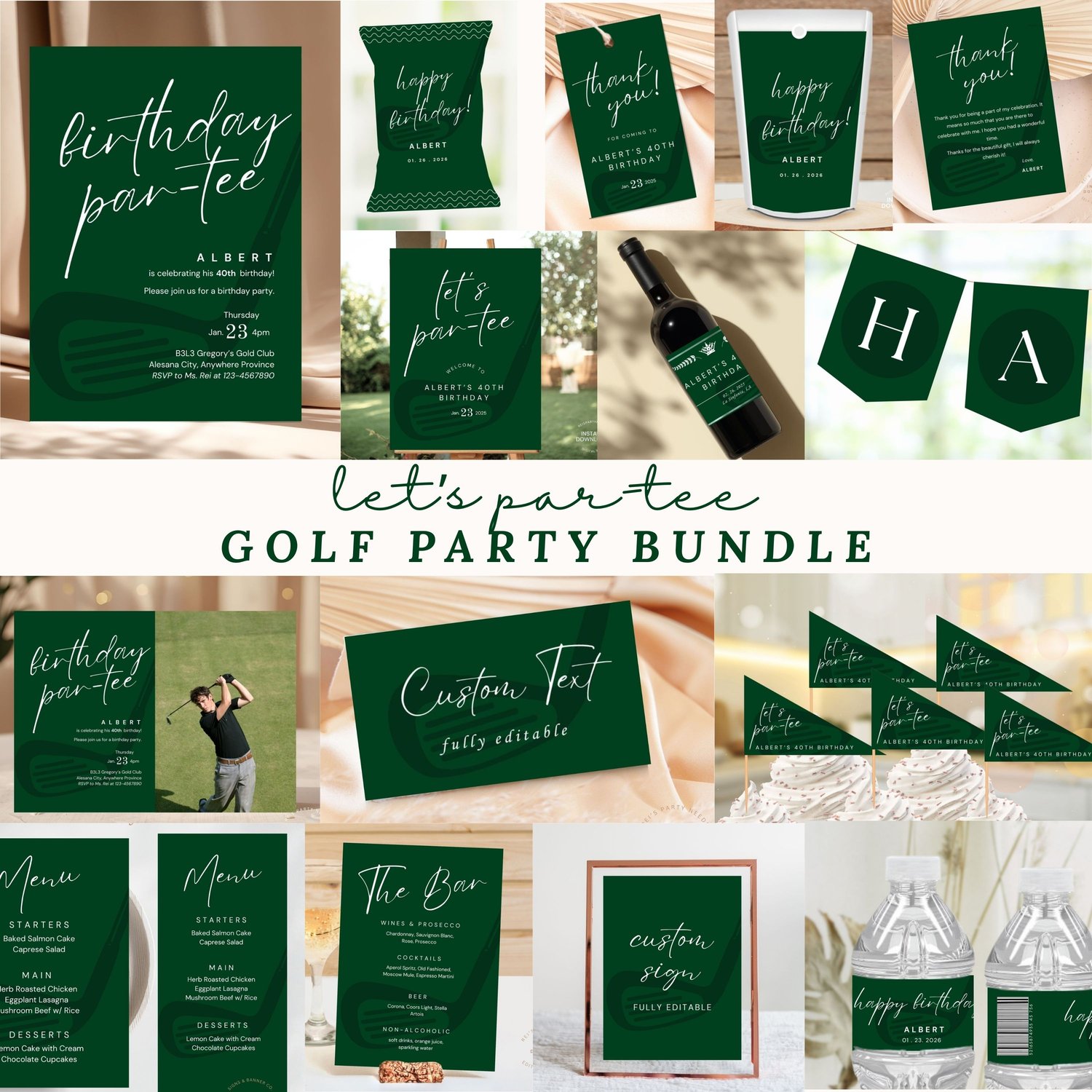 Golf Birthday Party Bundle Template • Golfing Party Decorations Printable • Let’s Par-Tee Birthday Decor • Editable Golf Theme Party Set