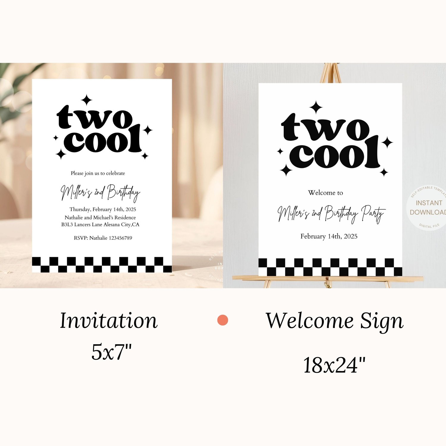 Two Cool Birthday Bundle, Boy 2nd Birthday Party Decorations, Modern Smile Face Theme, Editable Template, Checkered Cool Dude Decor Kit