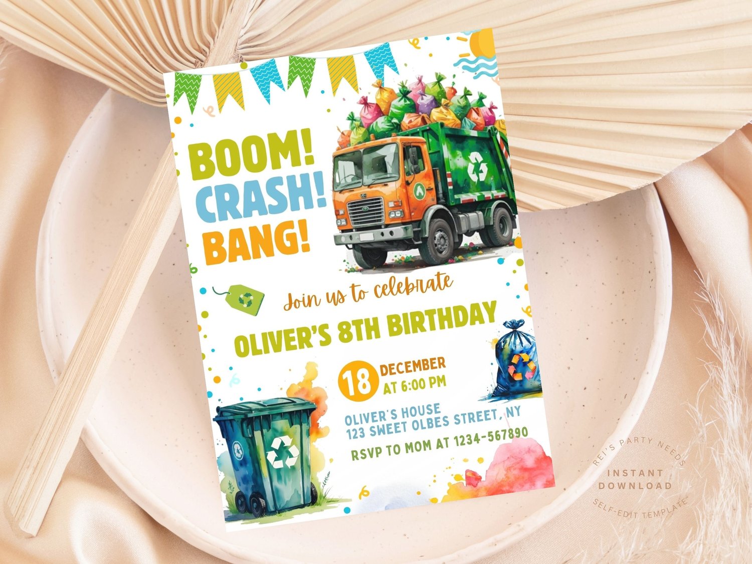 Editable Garbage Truck Birthday Invitation Template, Dump Truck Party Invite, Trash Truck Any Age Birthday, Trash Bash Bday Card, Canva DIY