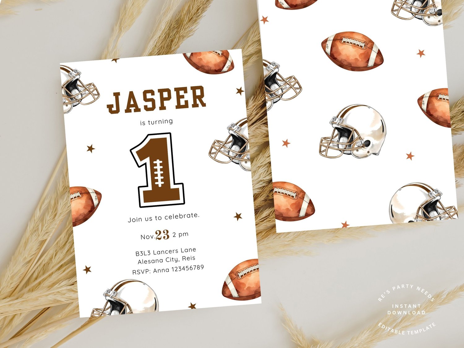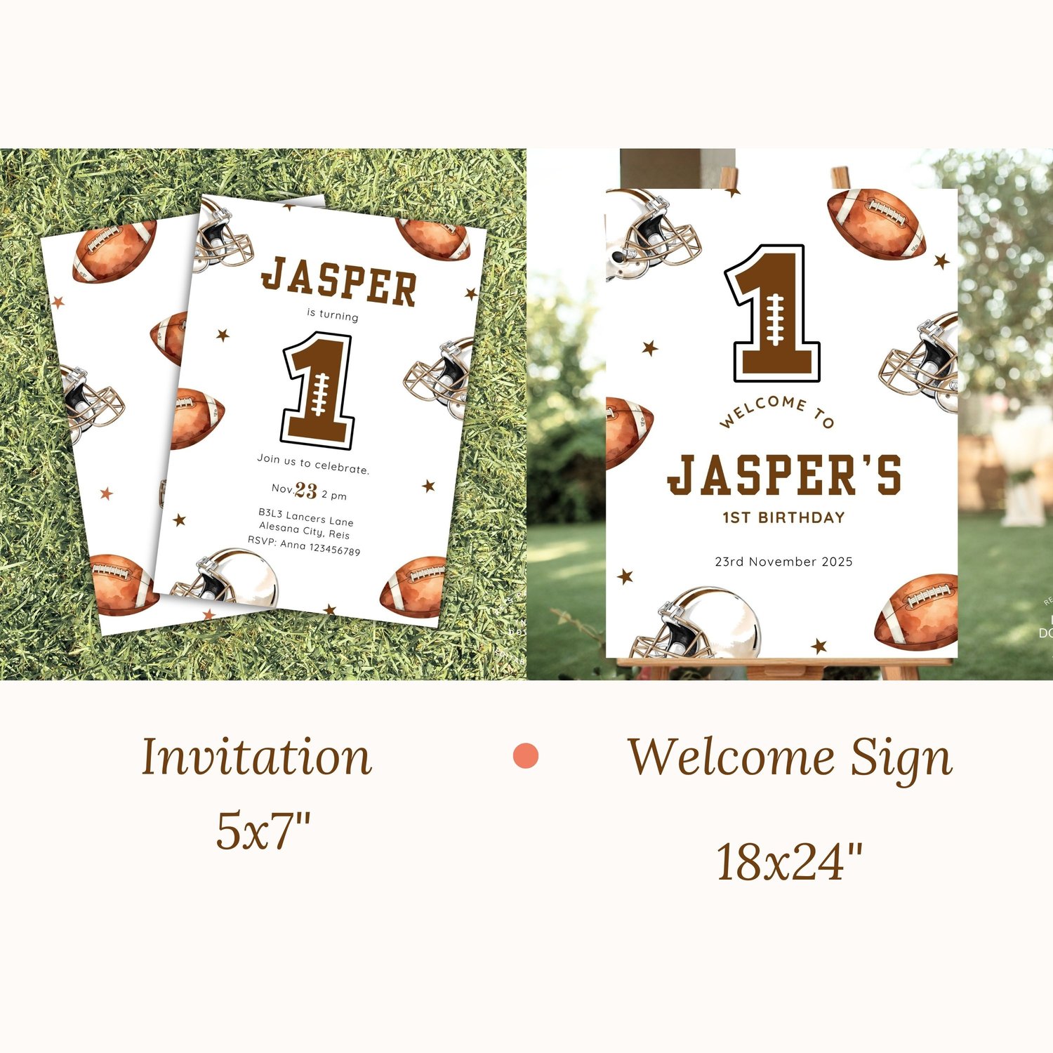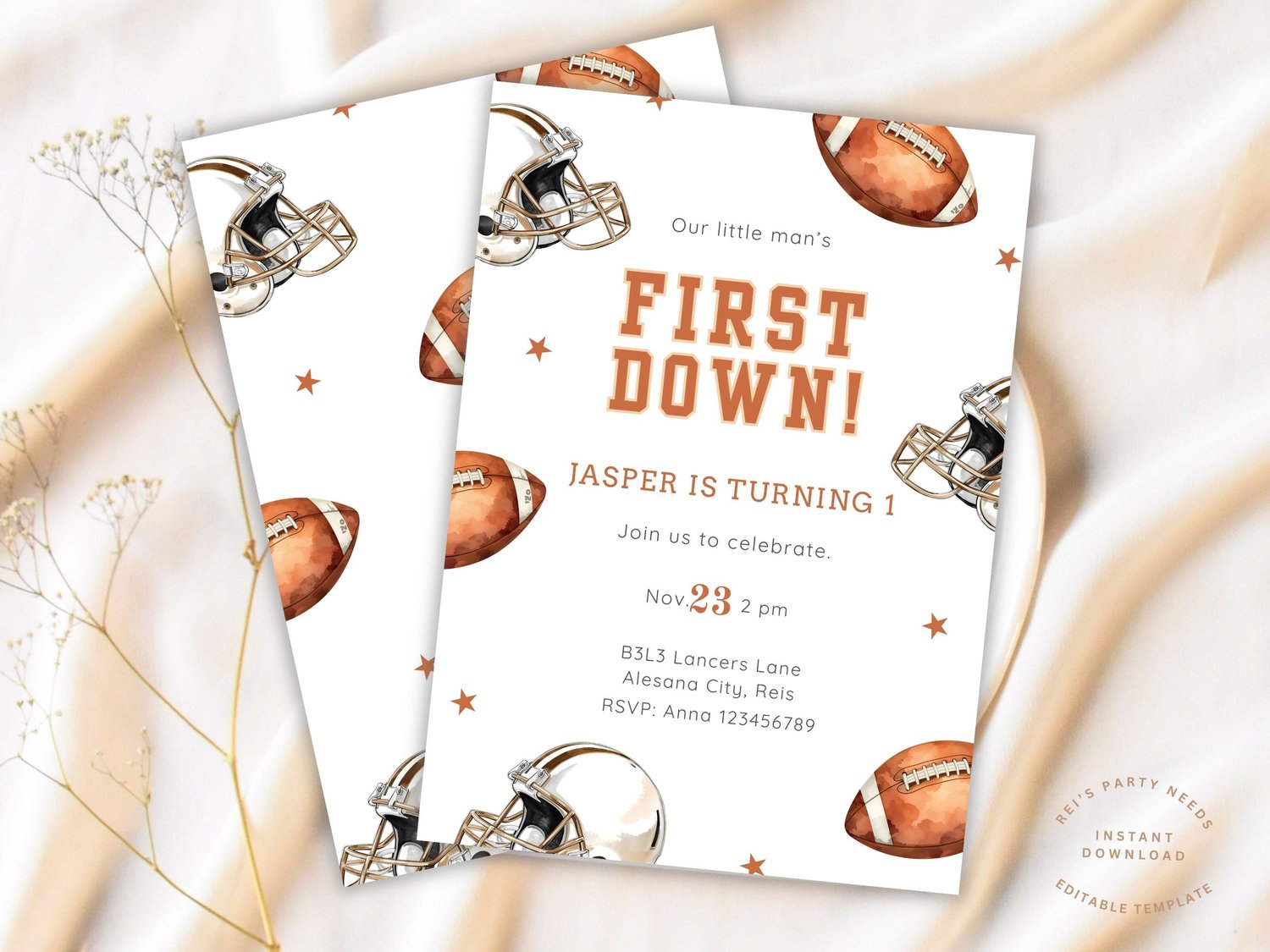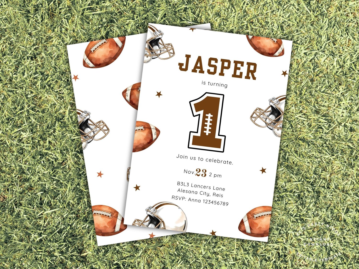 Editable Football Birthday Invitation, First Year Down, Football Birthday Number 1 Invite, Boy 1st Birthday, Game On, Canva Template