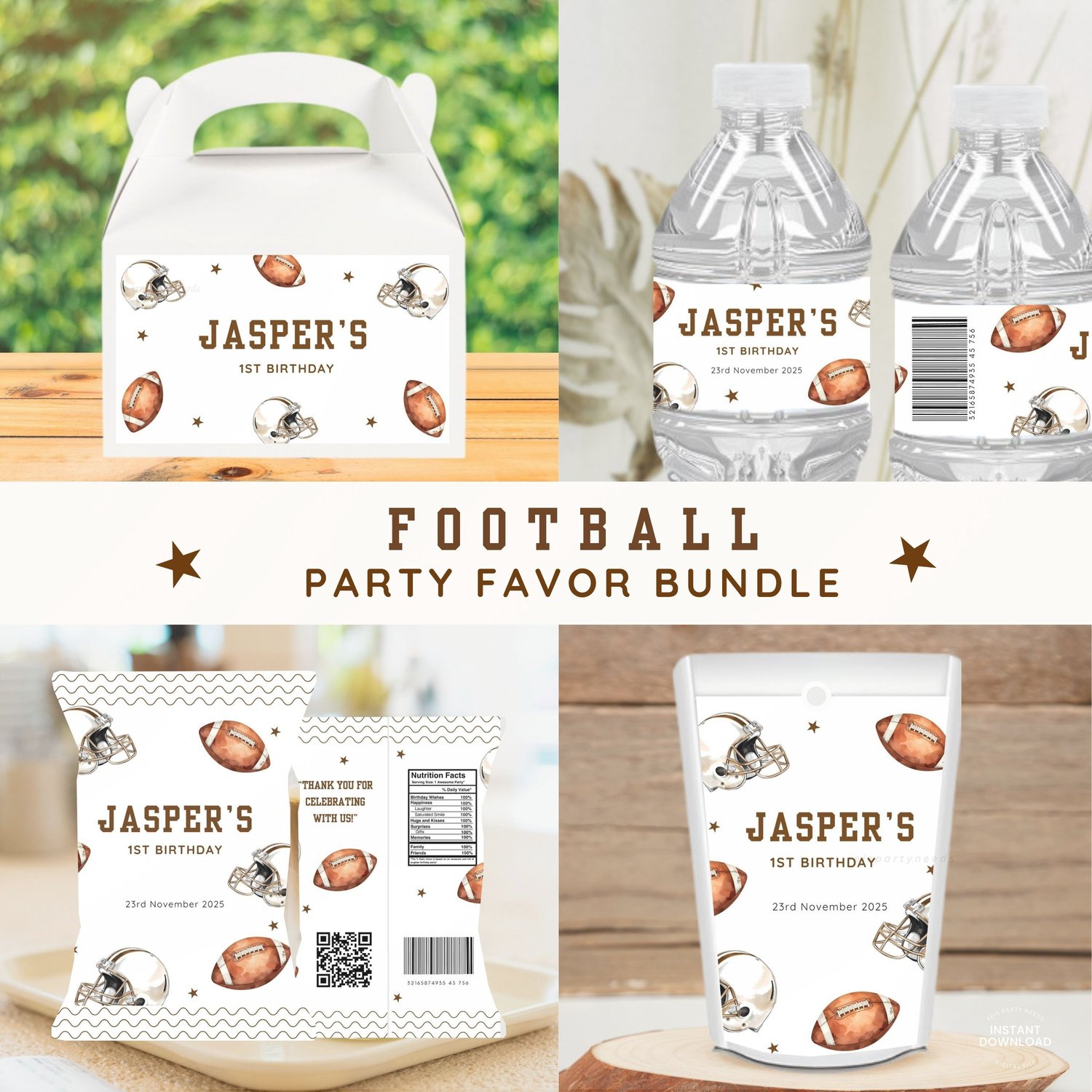 Football Birthday Bundle, Football Bundle, American Football Party Favors, Football Birthday Chip Bag, Football Juice Pouch Label Template