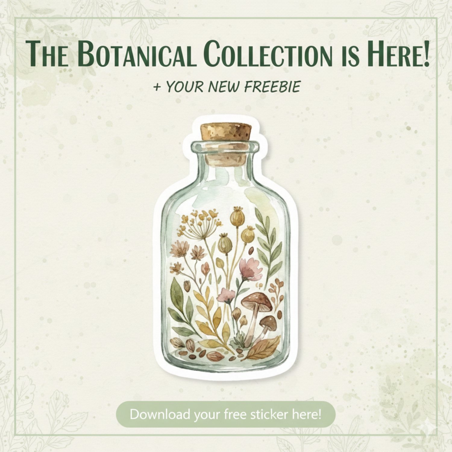 Free Botanical Apothecary Jar Digital Sticker – Watercolor Secret Garden Series